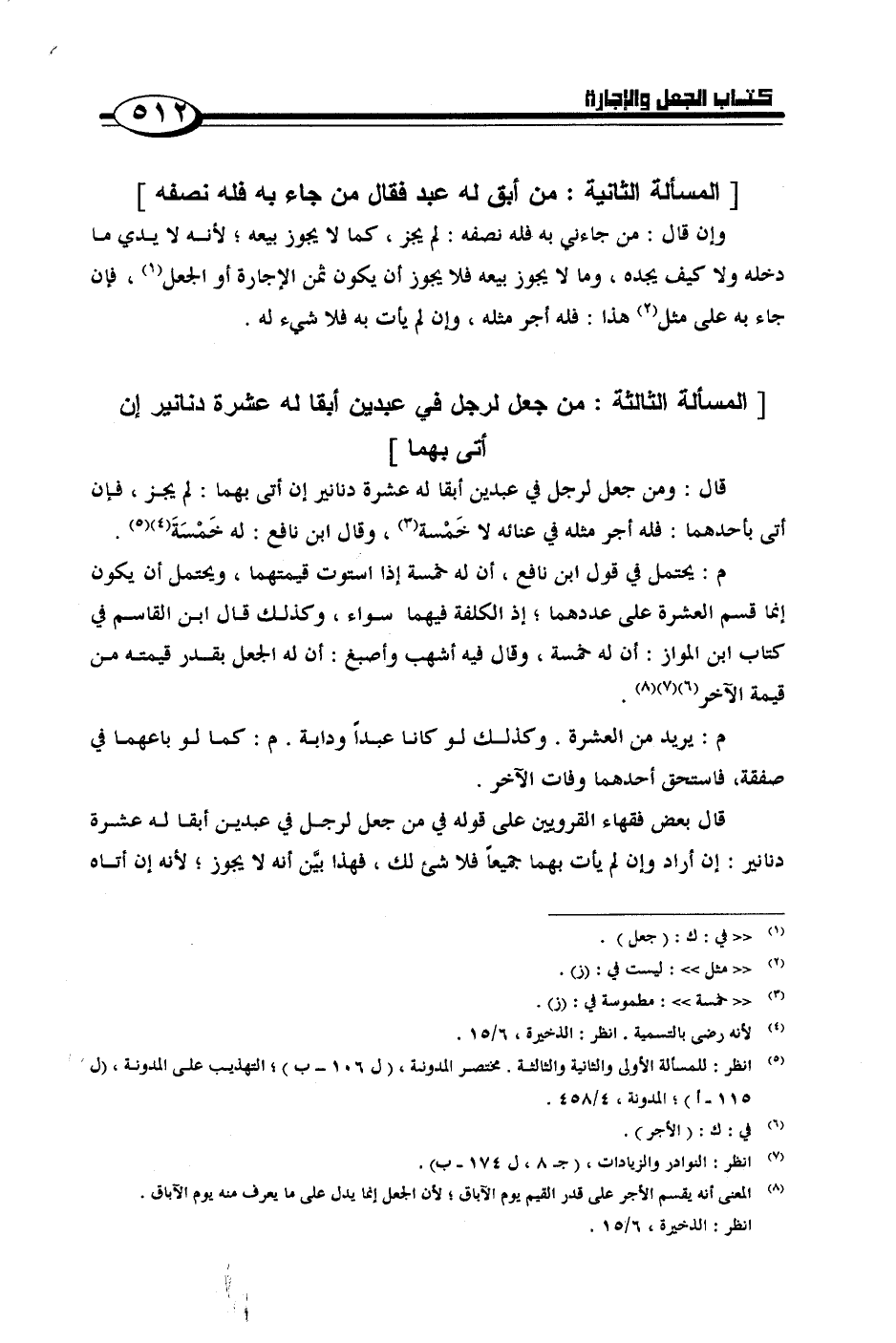 قال بعض الفقهاء القرويين على قوله في من جعل لرجل في عبدين أبقا له عشرة دنانير: إن أراد وإن لم يأت بهما جميعاً فلا شيء لك, فهذا بيَّن أنه لا يجوز؛ لأنه إن أتاه