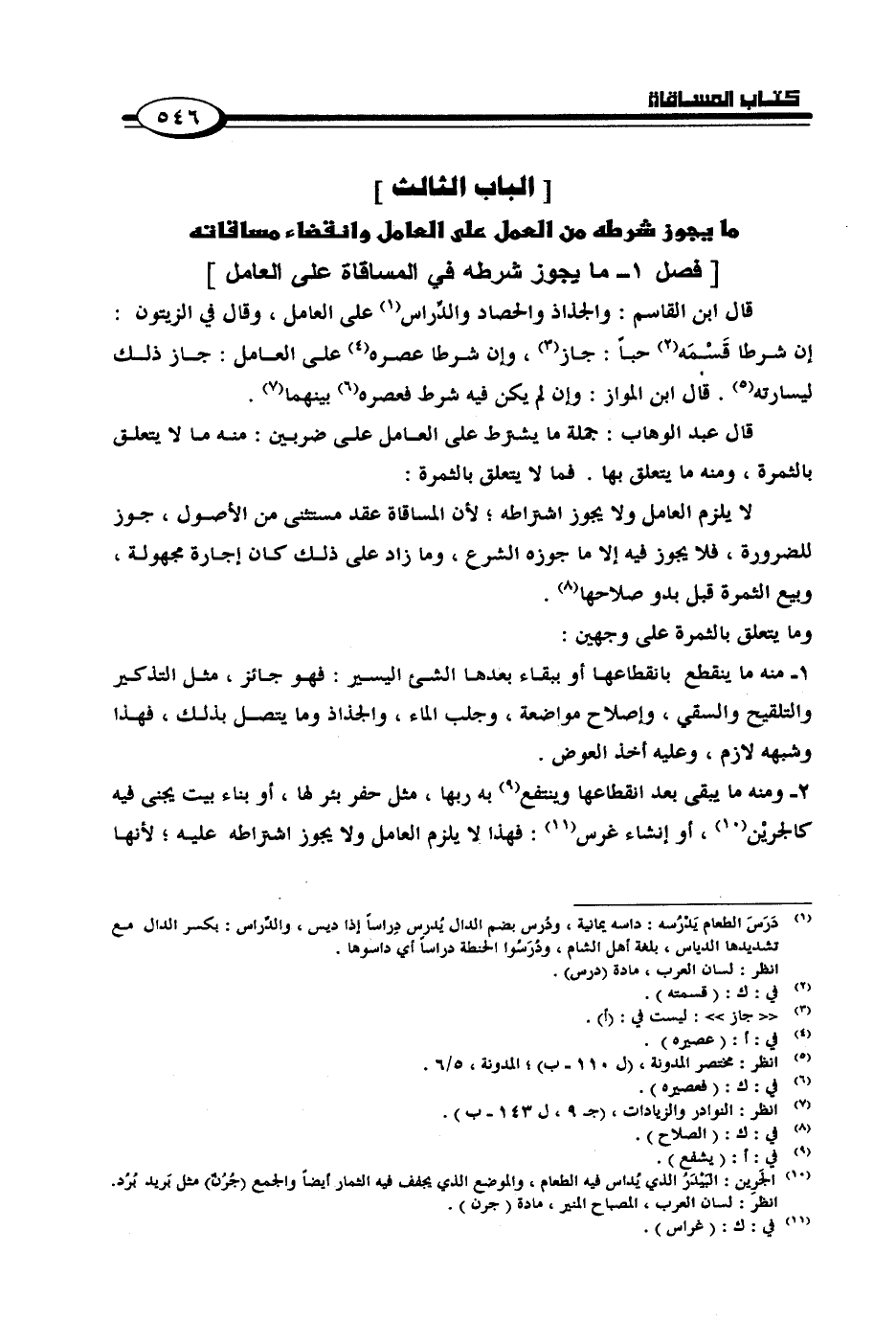 ما يجوز شرطه من العمل على العامل وانقضاء مساقاته