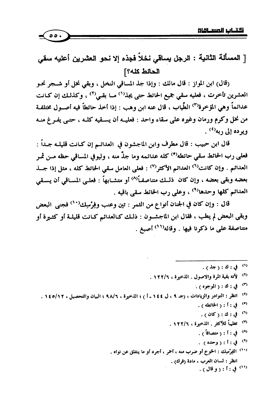 [المسألة الثانية: الرجل يساقي نخلاً فجذه إلا نحو العشرين أعليه سقى