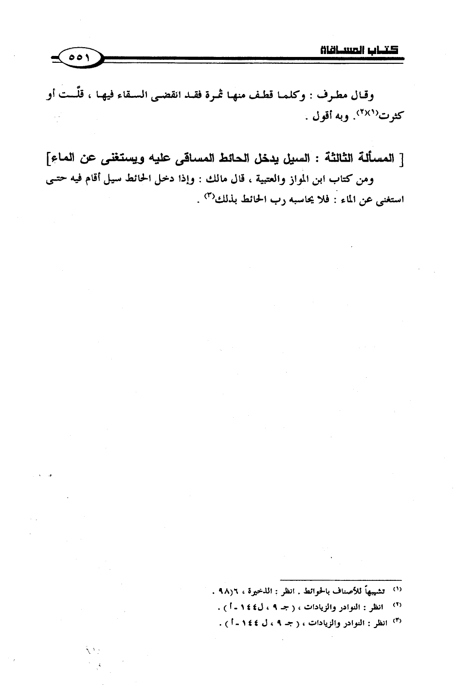 [المسألة الثالثة: السيل يدخل الحائط المساقي عليه ويستغني عن الماء]