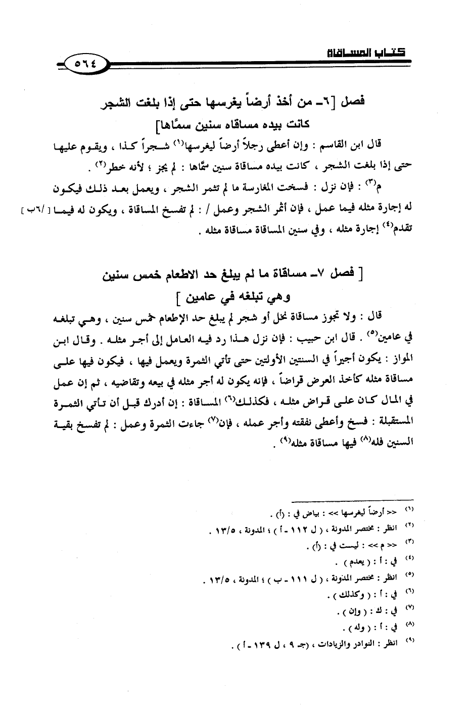 [فصل 7 - مساقاة ما لم يبلغ حد الاطعام خمس سنين