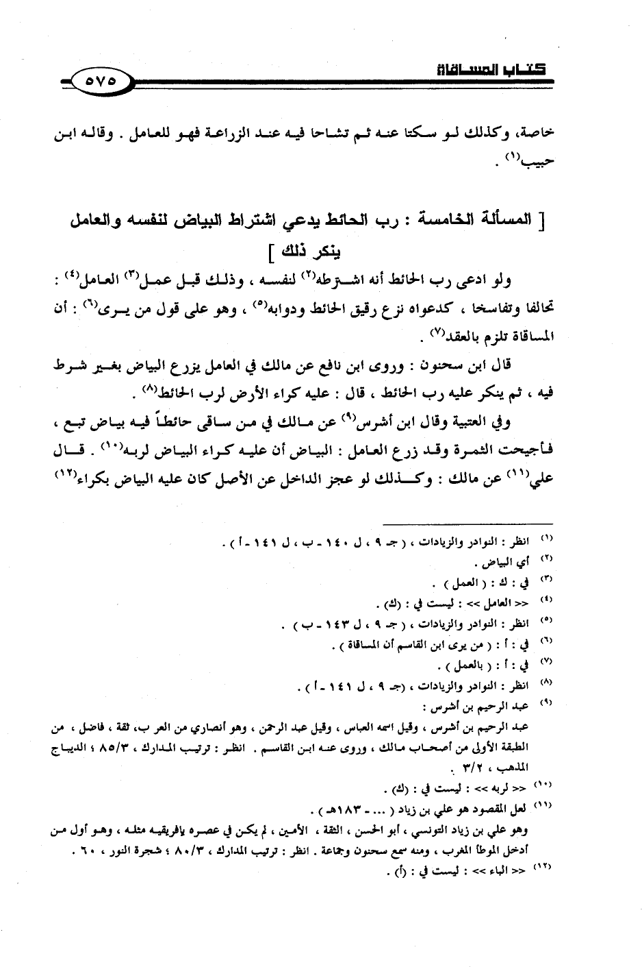 [المسألة الخامسة: رب الحائط يدعي اشتراط البياض لنفسه والعامل