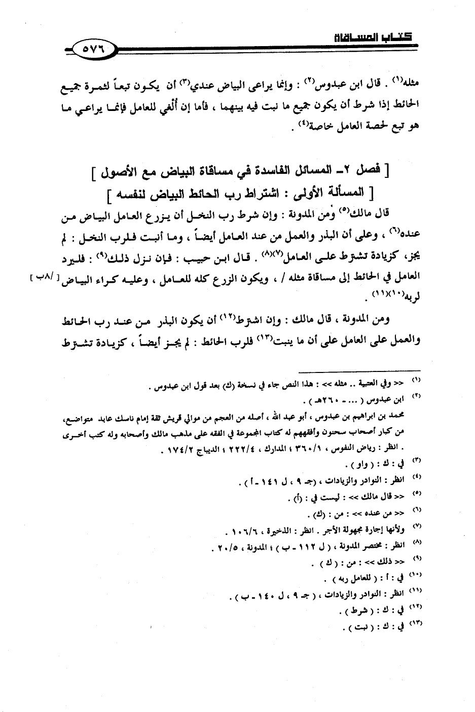 [فصل 2 - المسائل الفاسدة في مساقاة البياض مع الأصول]