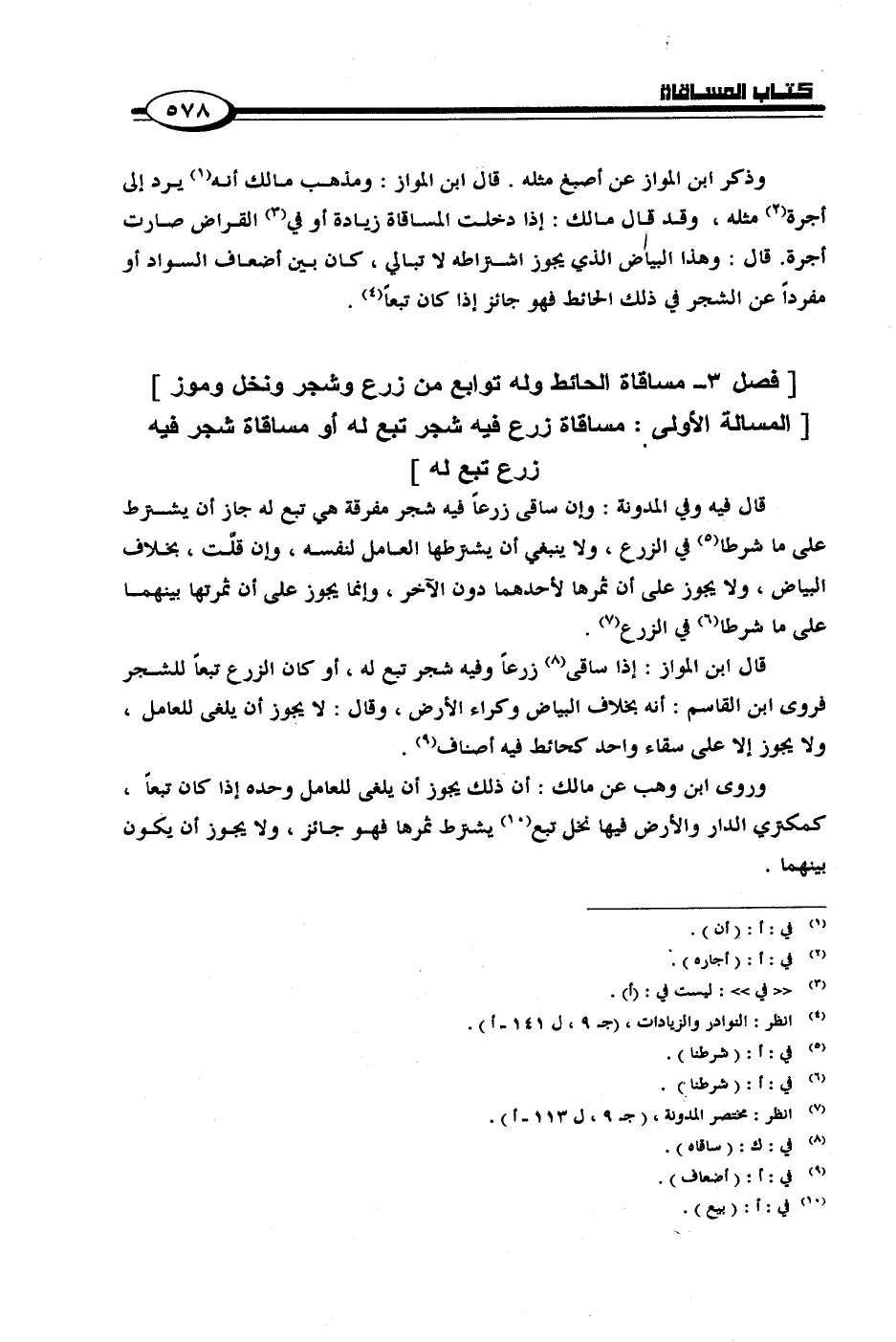 [فصل 3 - مساقاة الحائط وله توابع من زرع وشجر ونخل وموز]