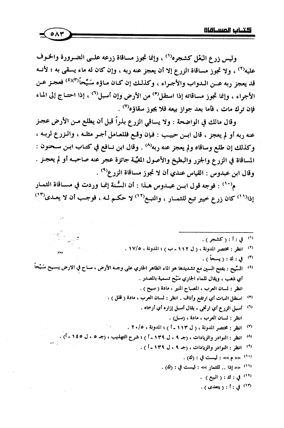 م: فوجه قول ابن عبدوس هذا: أن السُّنة إنما وردت في مساقاة الثمار إذا كان زرع خيبر للثمار, والتبع لا حكم له, فوجب أن لا يعدى
