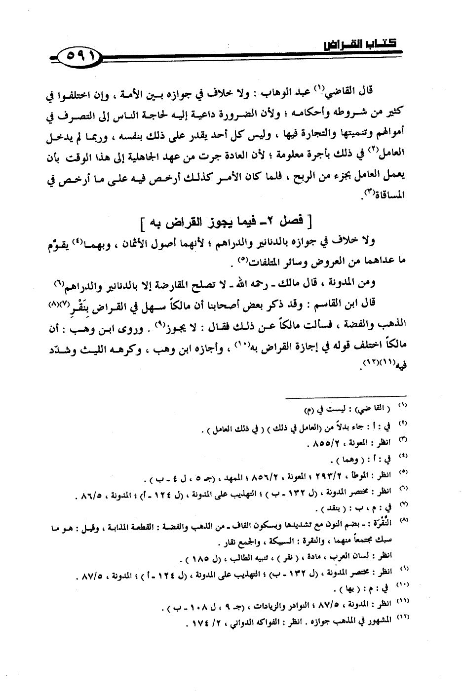 ومن المدونة, قال مالك -رحمه الله- لا تصلح المقارضة إلا بالدنانير والدراهم.