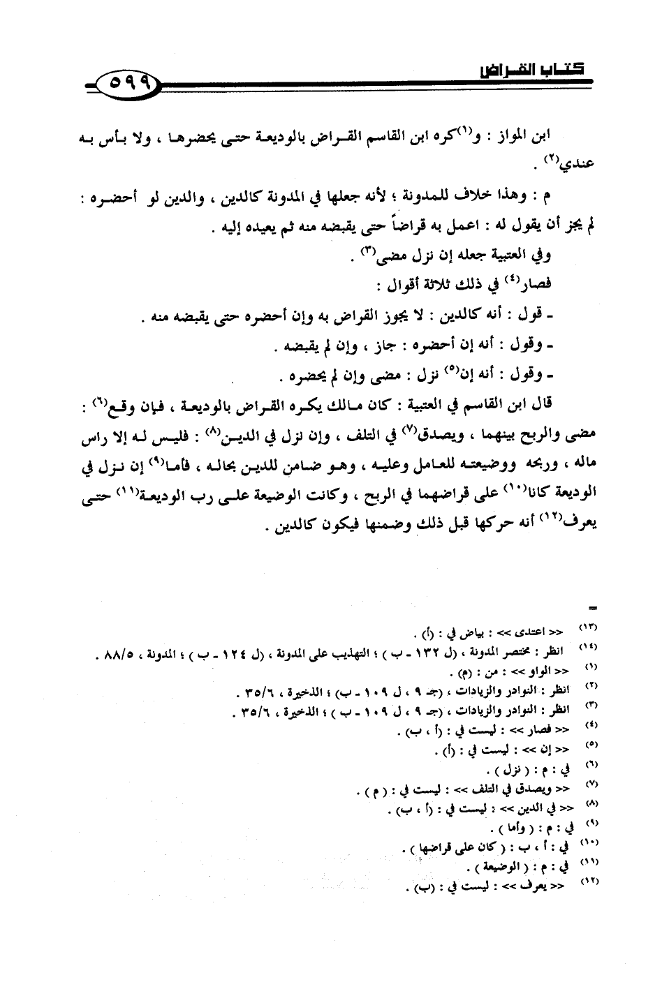 ابن المواز: وكره ابن القاسم القراض بالوديعة حتى يحضرها, ولا بأس به عندي.
