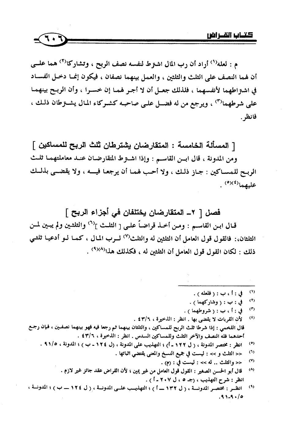 [المسألة الخامسة: المتقارضان يشترطان ثلث الربح للمساكين]