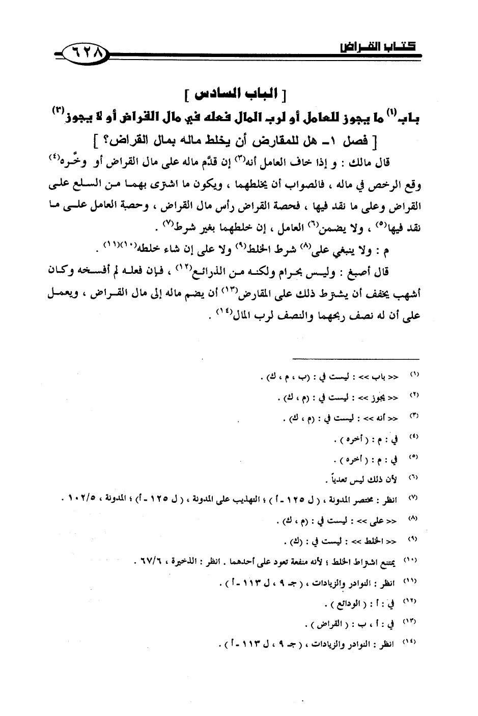 [فصل 1 - هل للمقارض أن يخلط ماله بمال القراض؟]