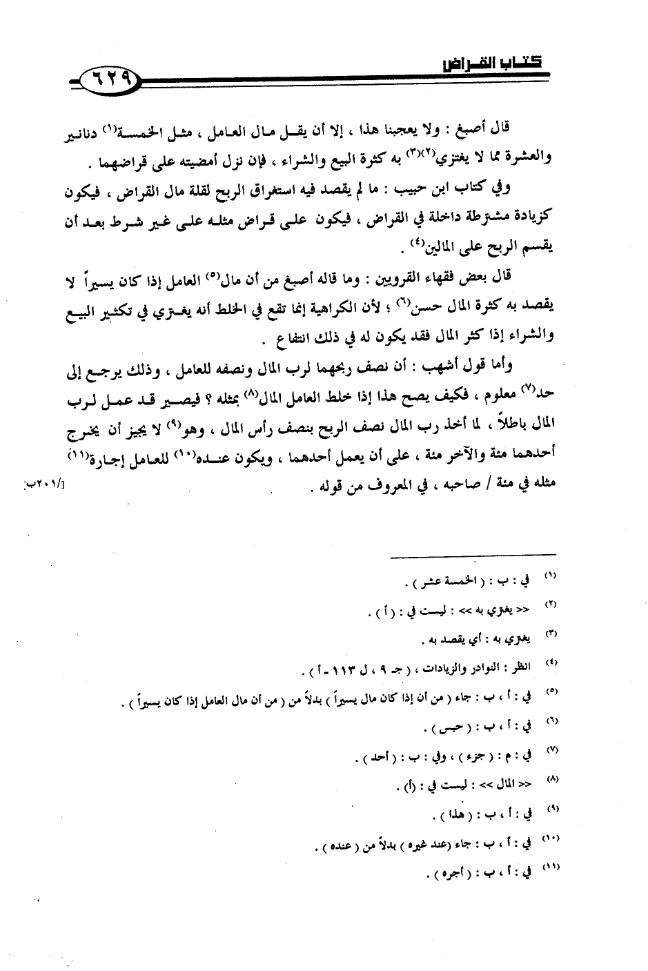 وفي كتاب ابن حبيب: ما لم يقصد فيه استغراق الربح لقلة مال القراض, فيكون كزيادة مشترطة داخلة في القراض, فيكون على قراض مثله على غير شرط بعد أن يقسم الربح على المالين.