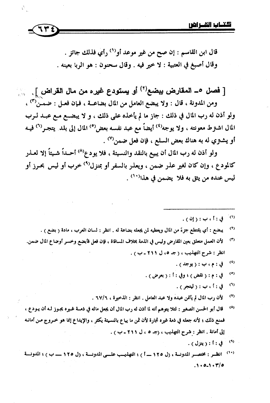 [فصل 5 - المقارض يبضع أو يستودع غيره من مال القراض]