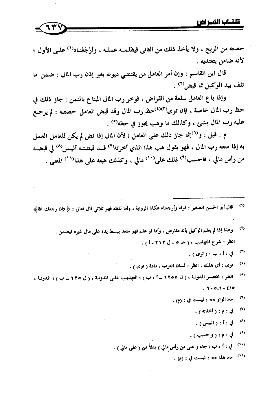 م: قيل: وإنما جاز ذلك على العامل؛ لأن المال إذا نض لم يكن للعامل العمل به إذا منعه رب المال, فهو يقول هب هذا الذي أخرته قد قبضته أليس لي قبضة من رأس مالي, فاحسب ذلك على مالي, وكذلك هبته على هذا المعنى.