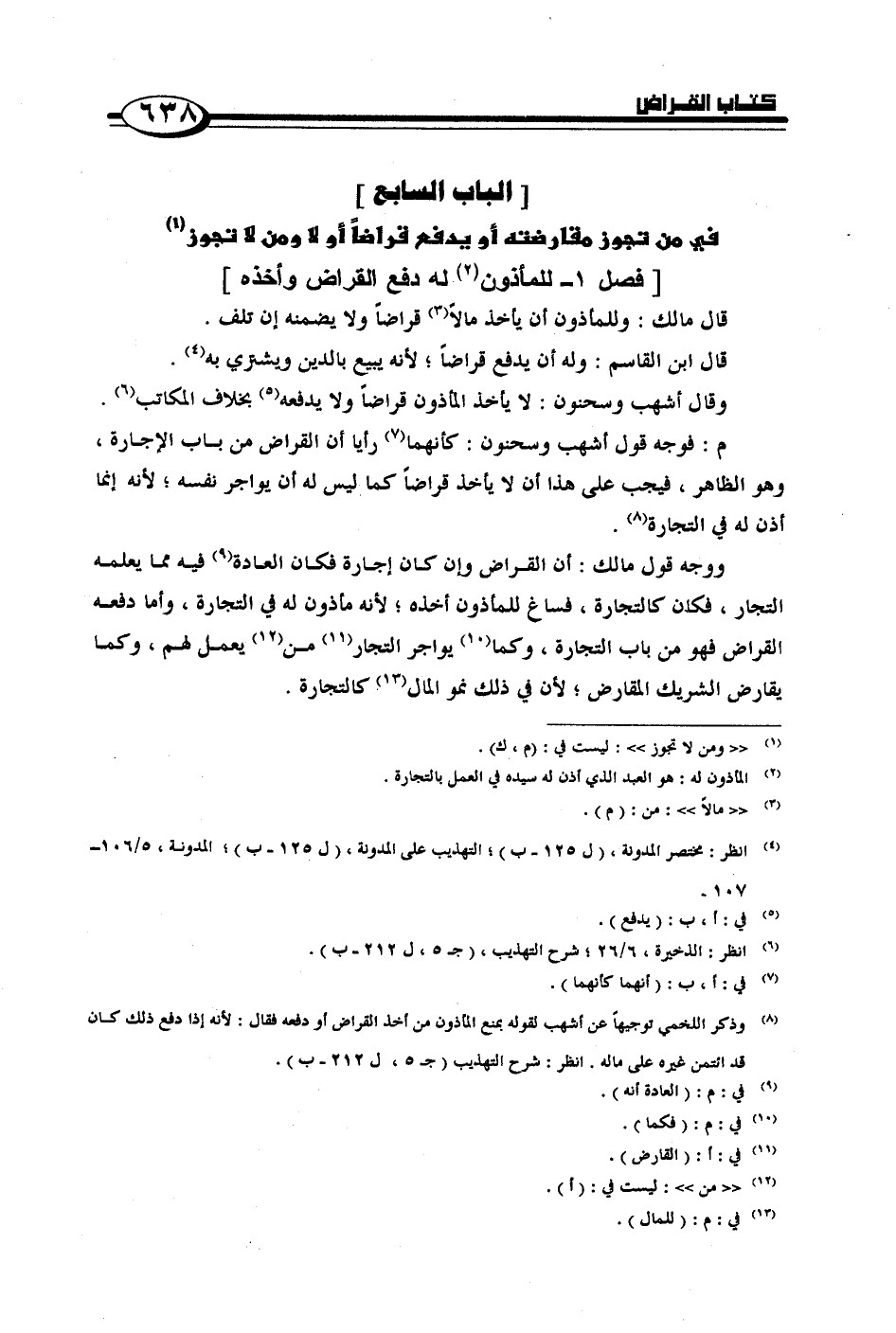 م: فوجه قول أشهب وسحنون: كأنهما رأيا أن القراض من باب الإجارة, وهو الظاهر, فيجب على هذا أن لا يأخذ قراضاً كما له أن يواجر نفسه, لأنه إنما أذن له في التجارة.