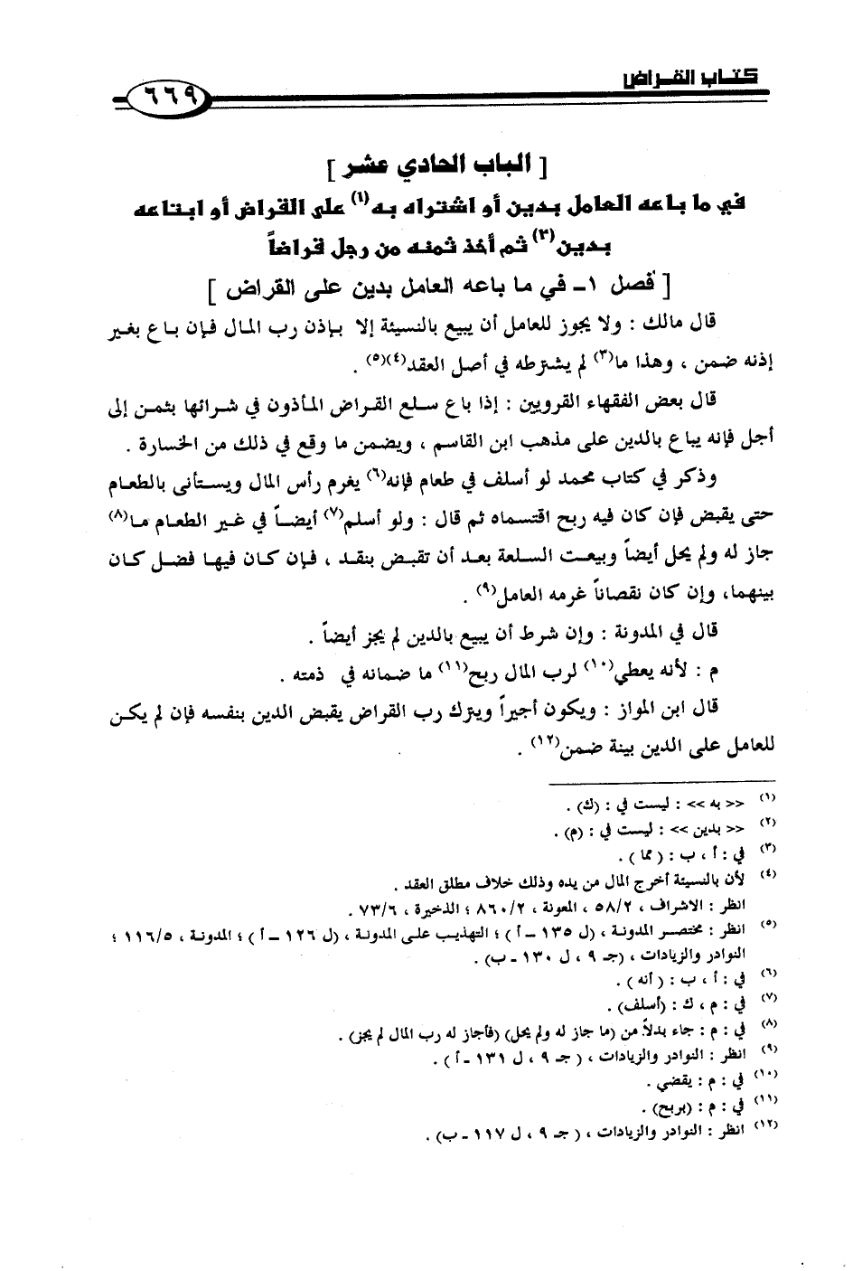 [فصل 1 - في ما باعه العامل بدين على القراض]