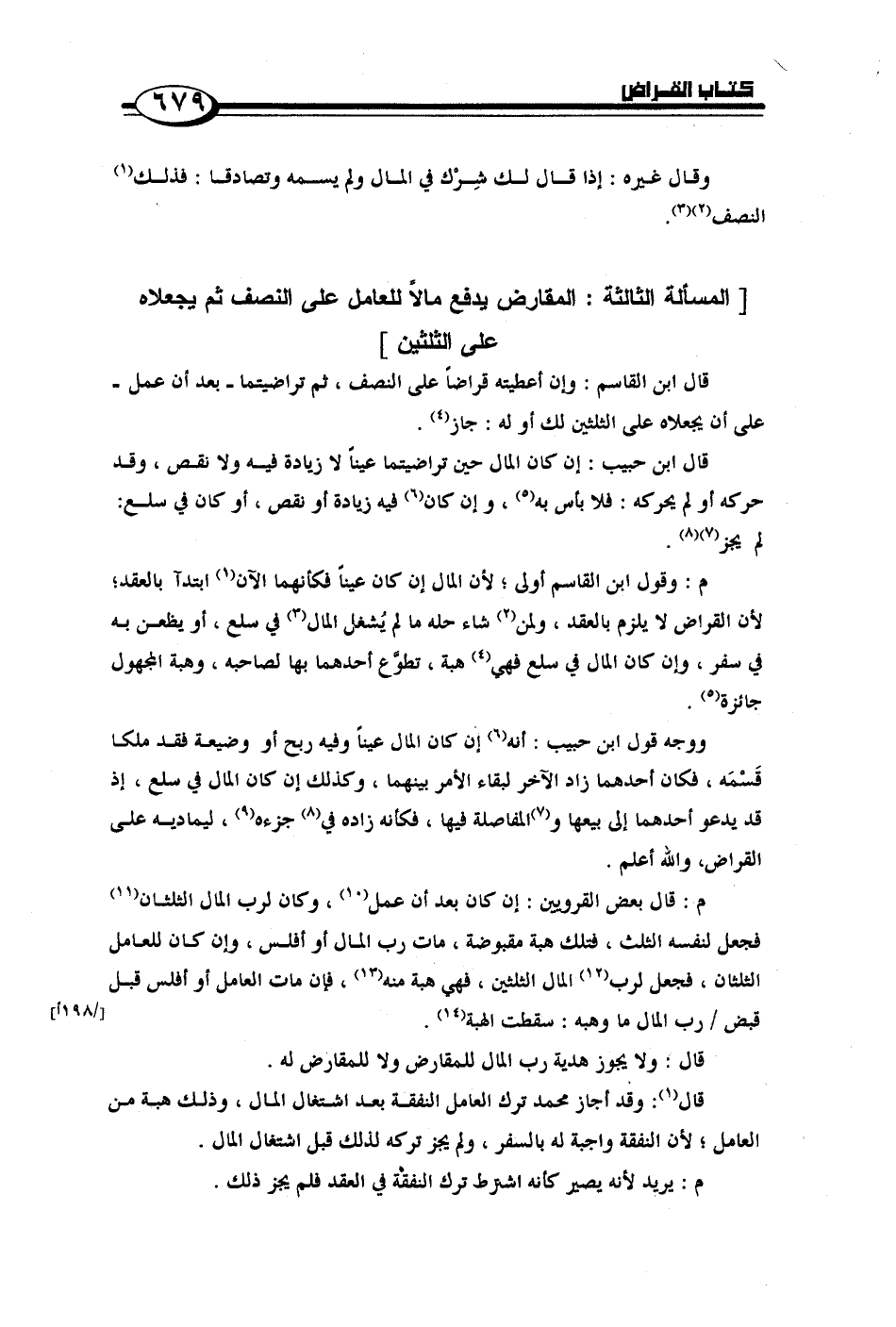 م: قال بعض القرويين: إن كان بعد أن عمل, وكان لرب المال الثلثان فجعل لنفسه الثلث, فتلك هبة مقبوضة, مات رب المال أو أفلس, وإن كان للعامل الثلثان, فجعل لرب المال الثلثين, فهي هبة منه, فإن مات العامل أو أفلس قبل قبض/ رب المال ما وهبه: سقطت الهبة.