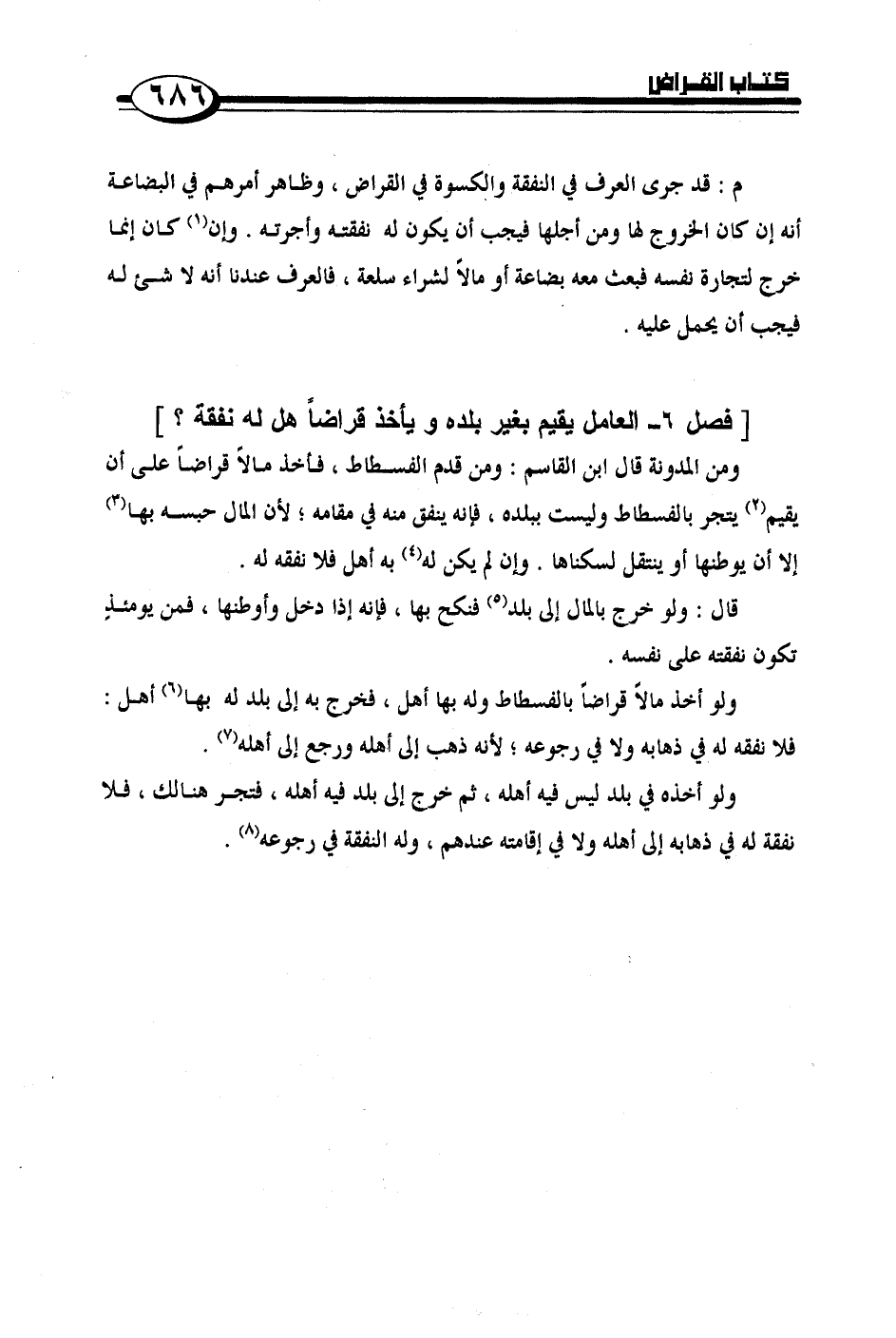 [فصل 6 - العامل يقيم بغير بلده ويأخذ قراضاً هل له نفقة؟]