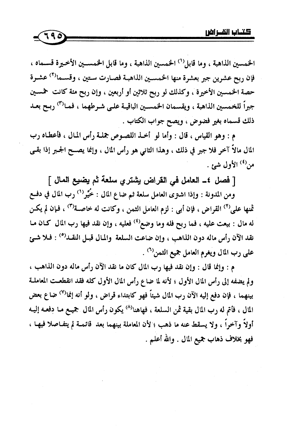 [فصل 4 - العامل في القراض يشتري سلعة ثم يضيع المال]