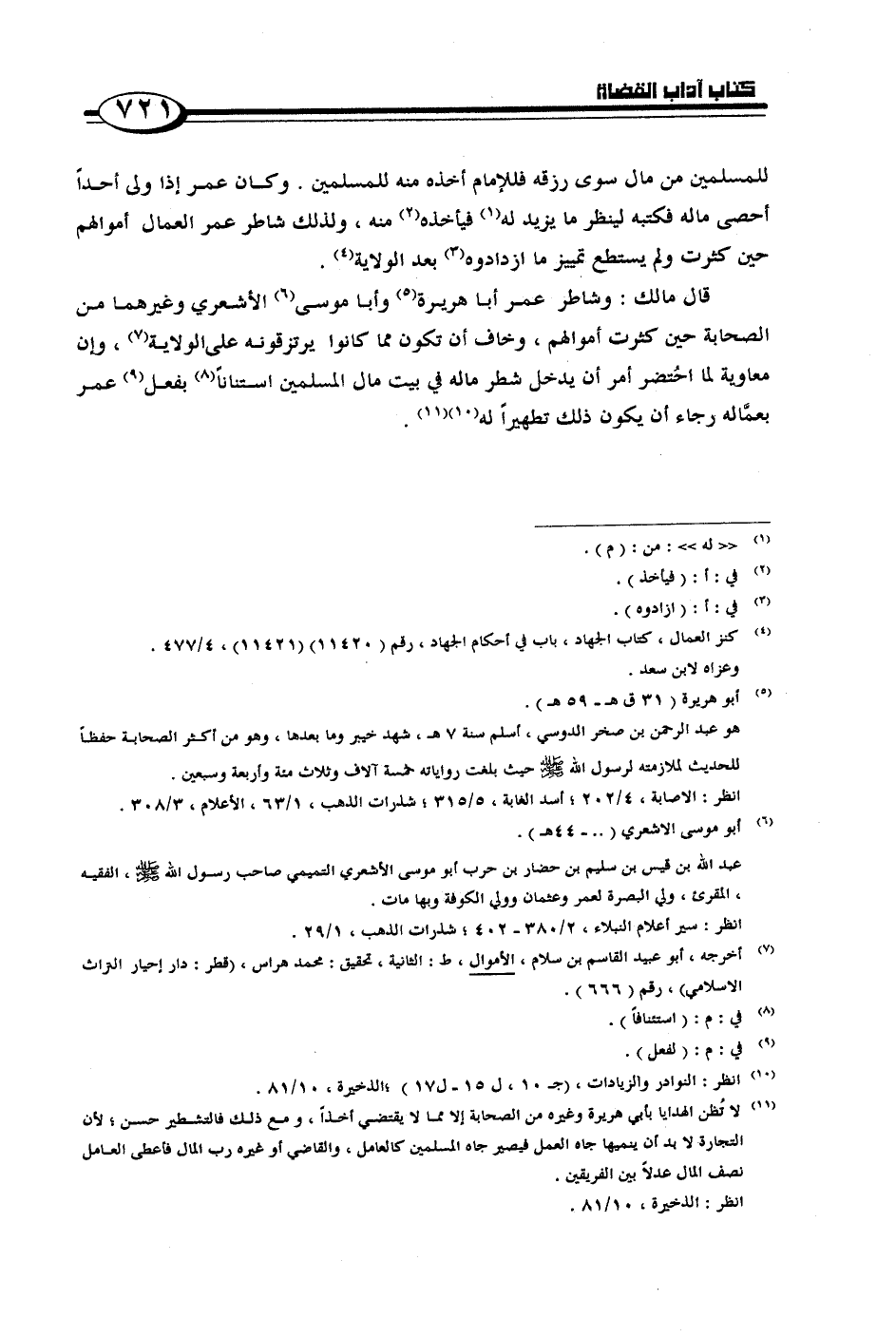 قال مالك: وشاطر عمر أبا هريرة وأبا موسى الأشعري وغيرهما من الصحابة حين كثرت أموالهم، وخاف أن تكون مما كانوا يرتزقونه على الولاية، وإن معاوية لما احتُضر أمر أن يدخل شطر ماله في بيت مال المسلمين استناناً بفعل عمر بعمَّاله رجاء أن يكون ذلك تطهيراً له.