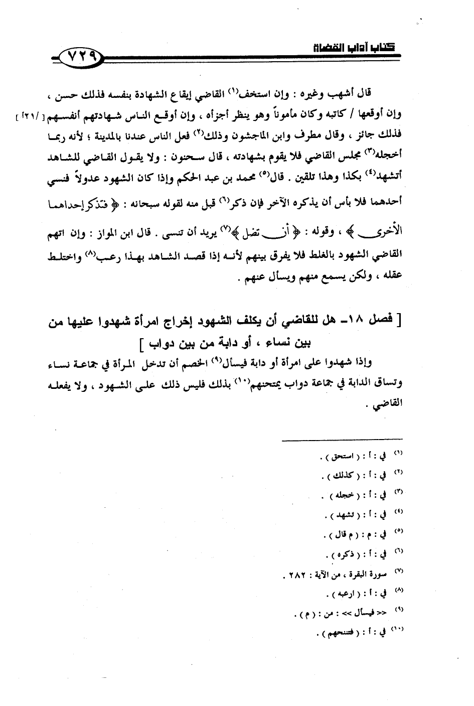 [فصل 18 - هل للقاضي أن يكلف الشهود إخراج امرأة شهدوا عليها من