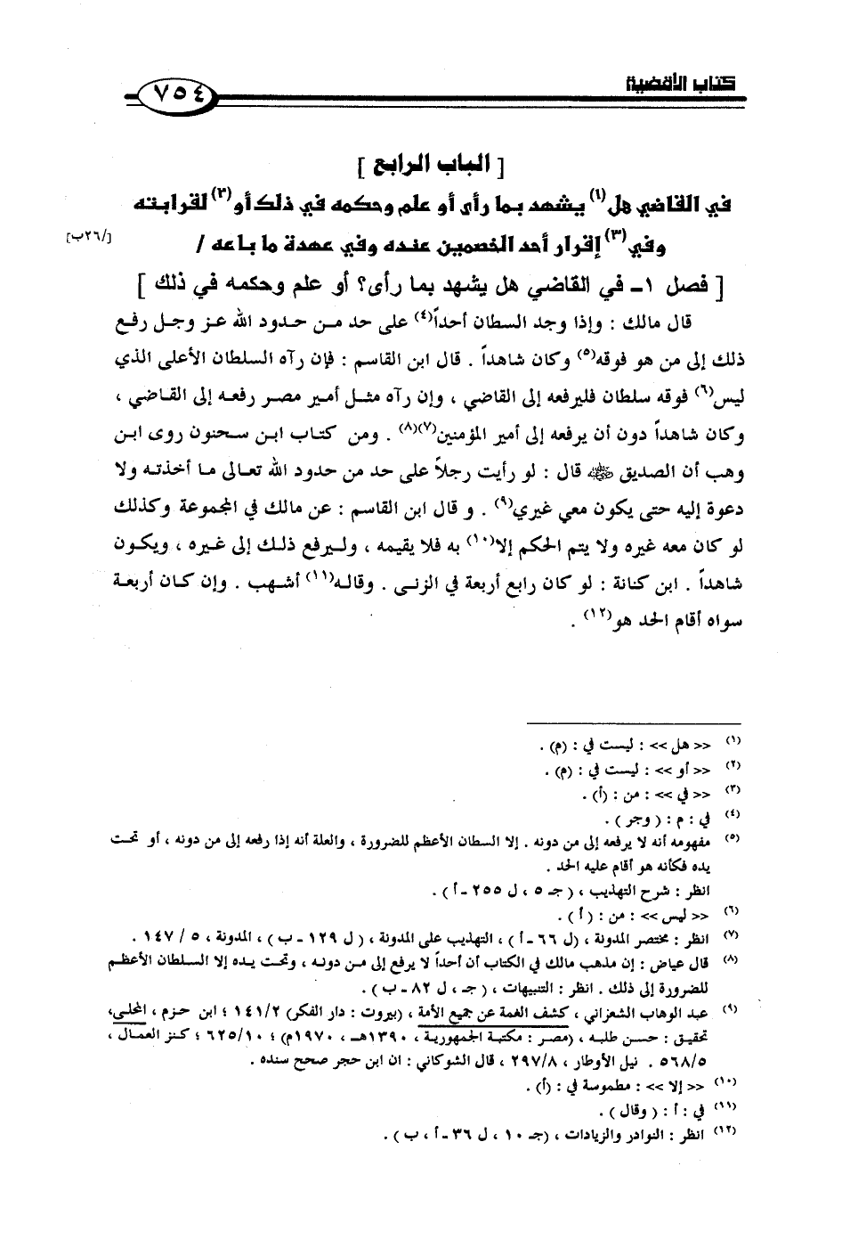 [فصل 1 - في القاضي هل يشهد بما رأى؟ أو علم وحكمه في ذلك]