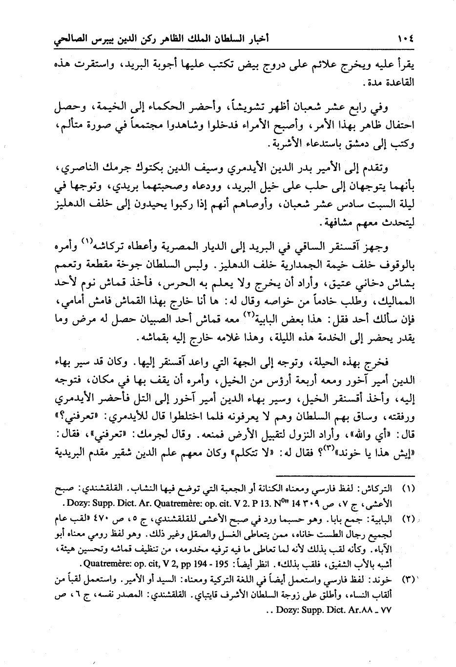 وجهز آقسنقر الساقي في البريد إلى الديار المصرية زأعطاله تركاشة ، وأمره بالوقوف خلف خيمة الجمدارية خلف الدهليز . ولبس السلطان جوخة مقطعة وتعمم بشاش دخاني عتيق ، وأراد أن يخرج ولا يعلم به الحارس ، فأخذ قماش نوم لأحد المماليك ، وطلب خادما من خواصه وقال له : ها أنا خارج بهذا القماش فامش أمامي ، فإن سألك أحد فقل : هذا بعض البابية معه قماش أحد الصبيان حصل له مرض وما يقدر يحضر إلى الخدمة هذه الليلة ، وهذا غلامه خارج إليه بقماشه .