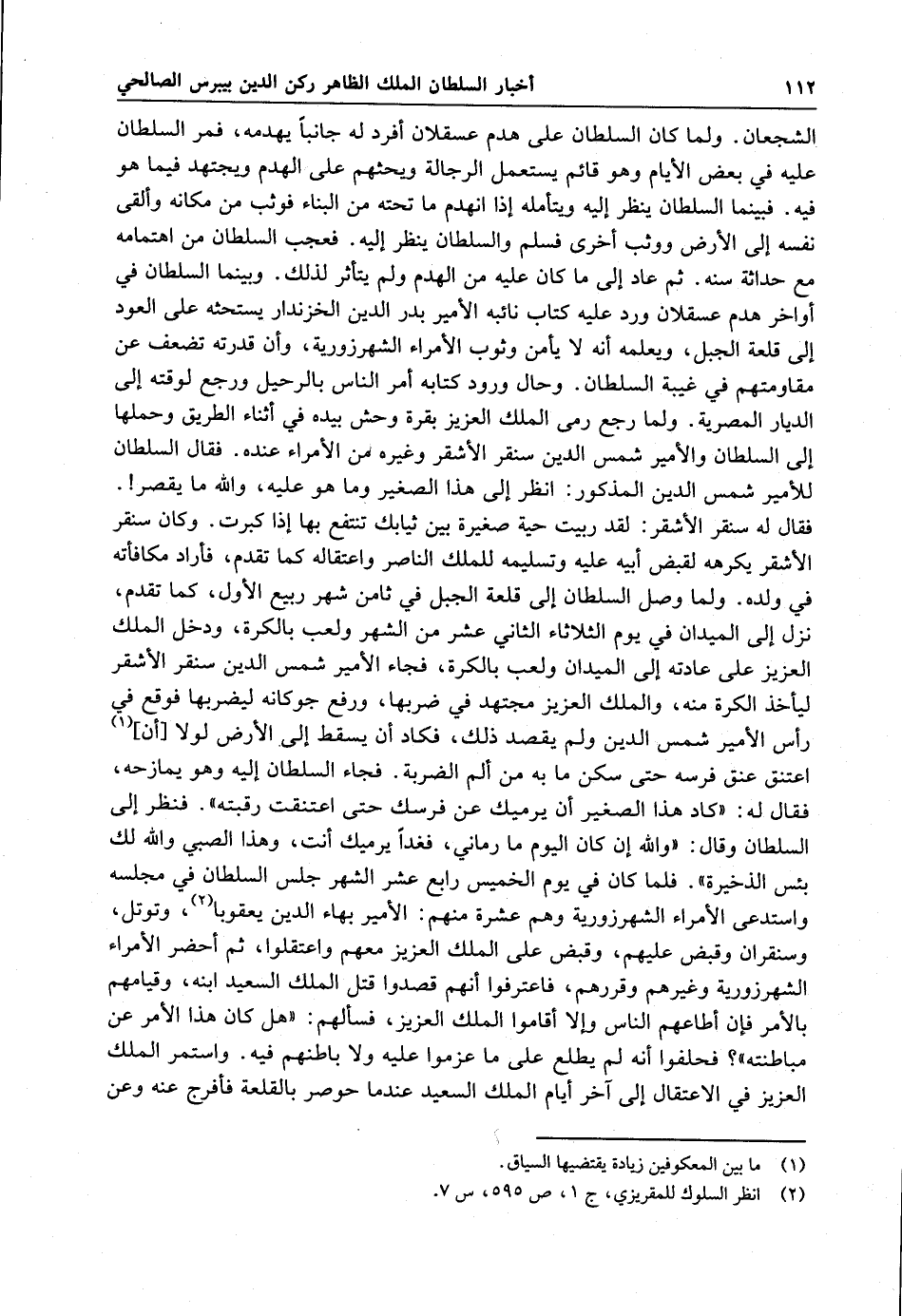 الشجعان . ولما كان السلطان على هدم عسقلان أفرد له جانبا يهدمه ، فمر السلطان عليه في بعض الأيام وهو قائم يستعمل الرجالة ومحثهم على الهدم ويجتهد فيما هو فيه . فبينما السلطان ينظر إليه ويتأمله إذا انهدم ما تحته من البناء فوثب من مكانه وألقى نفسه إلى الأرض ووثب أخرى فسلم والسلطان ينظر إليه . فعجب السلطان من اهتمامه مع حداثة سنه . ثم عاد إلى ما كان عليه من الهدم ولم يتأثر لذلك . وبينما السلطان في أواخر هدم عسقلان ورد عليه كتاب نائبه الأمير بدر الدين الخزندار يستحثه على العود إلى قلعة الجبل ، ويعمله أنه لا يأمن وثوب الأمراء الشهرزورية ، وأن قدرته تضعف عن مقاومتهم في غيبة السلطان . وحال ورود كتابة أمر الناس بالرحيل ورجع لوقته إلى الديار المصرية . ولما رجع رمي الملك العزيز بقوة وحش بيده في أثناء الطريق وحملها إلى السلطان والأمير شمس الدين المذكور : انظر إلى هذا الصغير وما هو عليه ، والله ما يقصر ؟ ؟ . فقال له سنقر الأشقر : لقد ربيت حية صغيرة بين ثيابك تنتفع بها إذا كبرت . وكان سنقر الأشقر يكرهه لقبض أبيه عليه وتسليمه للملك الناصر واعتقاله كما تقدم ، فأراد مكافأته في ولده . ولما وصل السلطان إلى قلعة الجبل في ثامن شهر ربيع الأول ، كما تقدم ، نزل إلى الميدان في يوم الثلاثاء الثاني عشر من الشهر ولعب الكرة ، ودخل الملك العزيز على عادته إلى الميدان ولعب بالكرة فجاء الأمير شمس الدين سنقر الأشقر ليأخذ الكرة منه ، والملك العزيز مجتهد في ضربها ، ورفع جوكانه ليضربها فوقع في رأس الأمير شمس الدين ولم يقصد ذلك ، فكاد أن يسقط إلى الأرض لولا " أن " اعتنق عنق فرسه حتى سكن ما به من ألم الضربة . فجاء السلطان إليه وهو يمازحه ، فقال له : " كاد هذا الصغير أن يرميك عن فرسك حتى اعتنقت رقبته . " فنظر إلى السلطان وقال : " والله إن كان اليوم ما رماني ، فغدا يرميك أنت ، وهذا الصبي والله لك بئس الذخيرة " . فلما كان في يوم الخميس رابع عشر الشهر جلس السلطان في مجلسه واستدعى الأمراء الشهرزورية وهم عشرة منهم : الأمير بها الدين يعقوبا ، وتوتلت وسنقران وقبض عليهم ، وقبض على الملك العزيز معهم واعتقلوا ، ثم أحضر الأمراء الشهرزورية وغيرهم وقرررهم ، فاعترفوا أنهم قصدوا قتل الملك السعيد ابنه ، وقيامهم بالأمر فإن أطاعهم الناس وإلا أقاموا الملك العزيز ، فسألهم : " هل كان هذا الأمر عن مباطنته ؟ " فحلفوا أنه لم يطلع على ما عزموا عليه ولا باطنهم فيه . واستمر الملك العزيز في الاعتقال إلى آخر أيام الملك السعيد عندما حوصر بالقلعة فأفرج عنه وعن