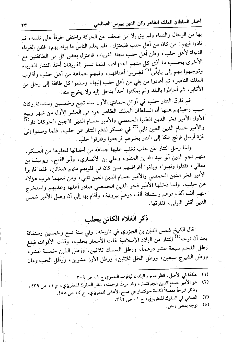 قال الشيخ شمس الدين بن الجزري في تاريخه : وفي سنة تسع وخمسين وستمائة بعد أن توجه التتار من البلاد الإسلامية غلت الأسعار بحلب ، وقلت الأقوات فبلغ رطل اللحم سبعة عشر درهما ، ورطل السمك ثلاثين ، ورطل اللبن خمسة عشر ، ورطل الشيرج سبعين ، ورطل الخل ثلاثين ، ورطل الأرز عشرين ، ورطل الحب رمان