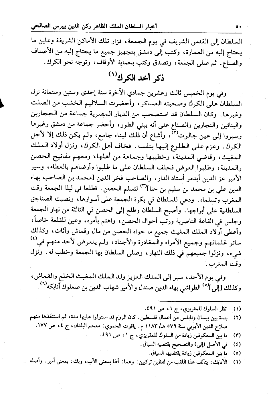 السلطان إلى القدس الشريف في يوم الجمعة ، فزار تلك الأماكن الشريفة وعاين ما يحتاج إليه من العمارة ، وكتب إلى دمشق يتجهز جميع ما يحتاج إليه من الأصناف والصناع . ثم صلى الجمعة ، وتصدق وكتب بحماية الأوقاف ، وتوجه نحو الكرك .