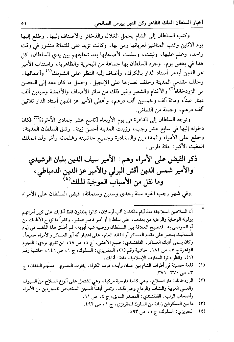 وفي شهر رجب الفرد سنة إحدى وستين وستمائة ، قبض السلطان على الأمراء