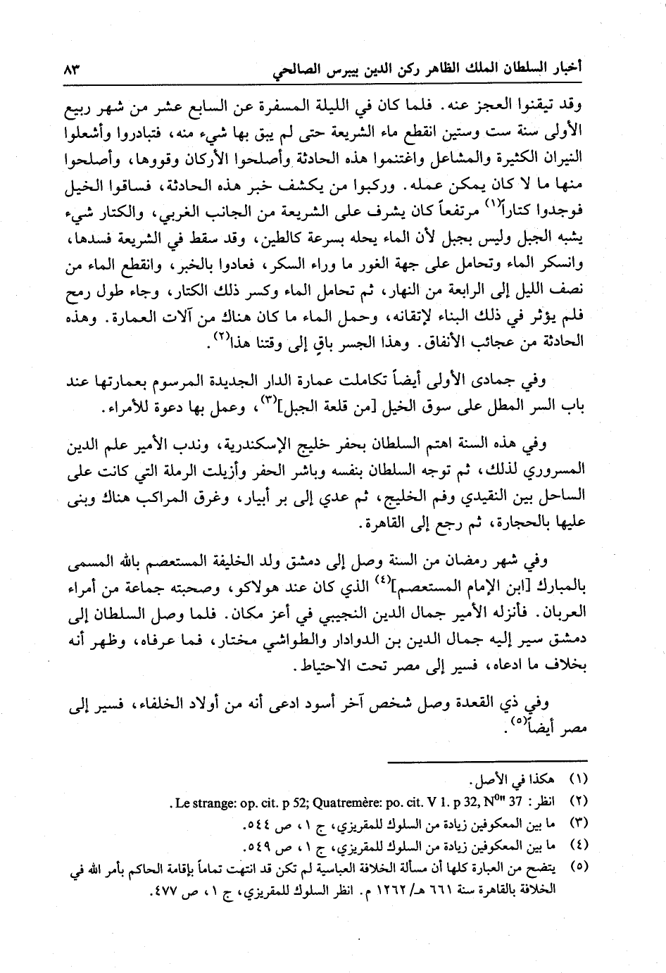 وفي شهر رمضان من السنة وصل إلى دمشق ولد الخليفة المستعصم بالله المسمى بالمبارك الذي كان عند هولاكو ، وصحبته جماعة من أمراء العربان .