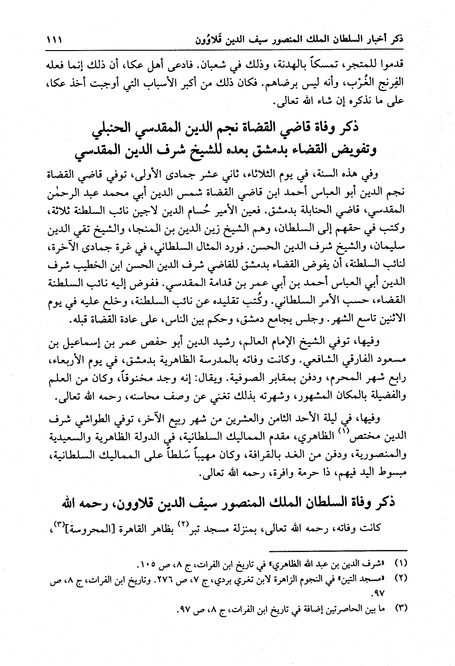 ذكر وفاة السلطان الملك المنصور سيف الدين قلاون ، رحمه الله