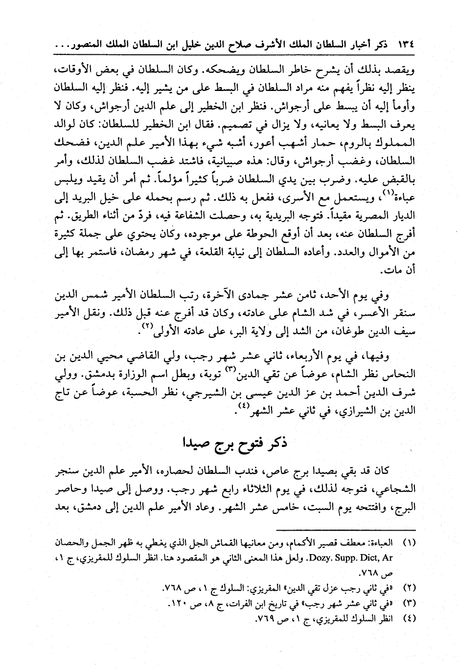 كان قد بقي بصيدا برج عاص ، فندب السلطان لحصاره ، الأمير علم الدين سنجر الشجاعي ، فتوجه لذلك ، في يوم الثلاثاء رابع شهر رجب . ووصل إلى صيدا وحاصر البرج ، وافتتحه في يوم السبت ، خامس عشر الشهر . وعاد الأمير علم الدين إلى دمشق ، بعد