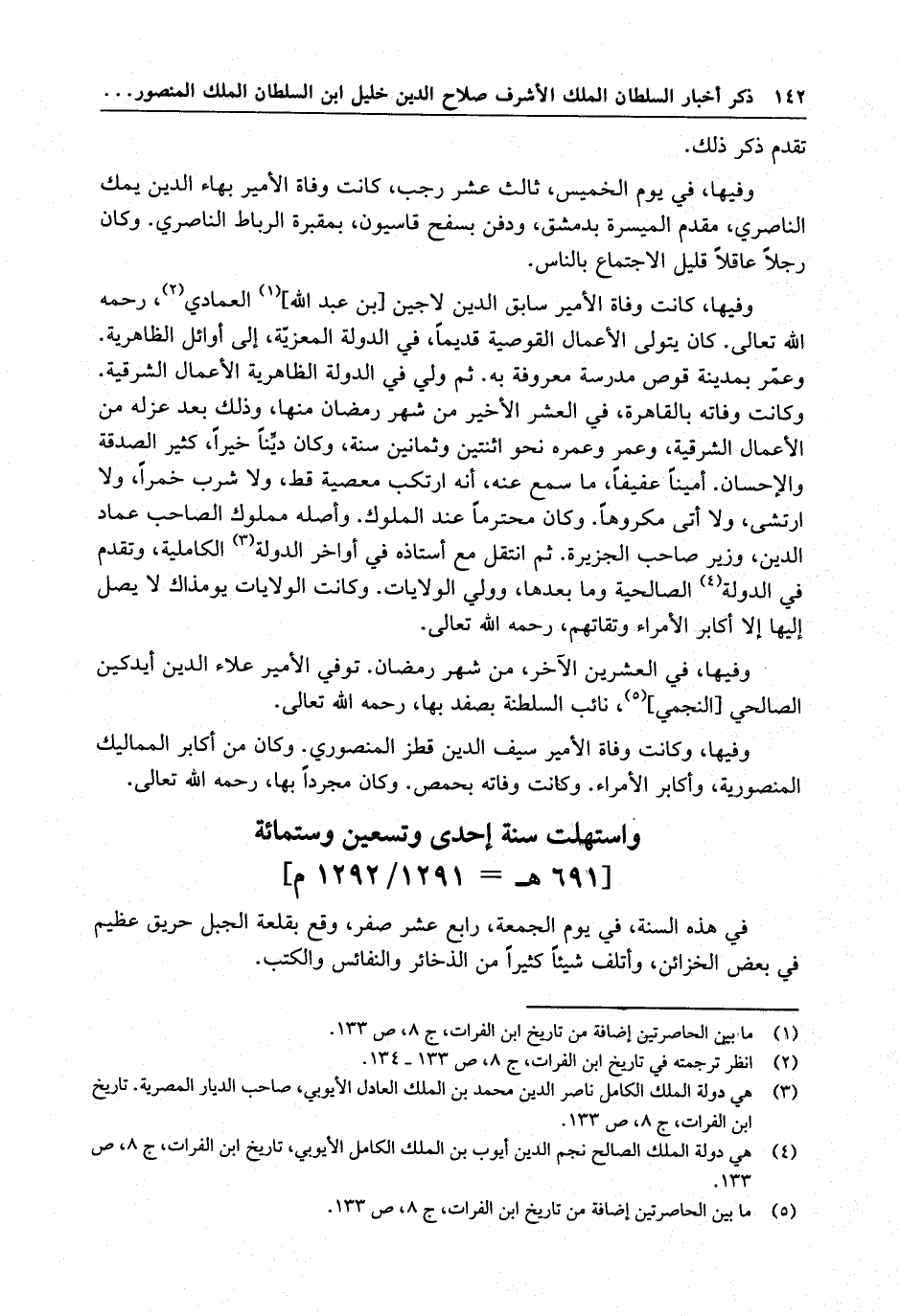 واستهلت سنة إحدى وتسعين وستمائة [ 691 ه 1291 / 1292 م ]