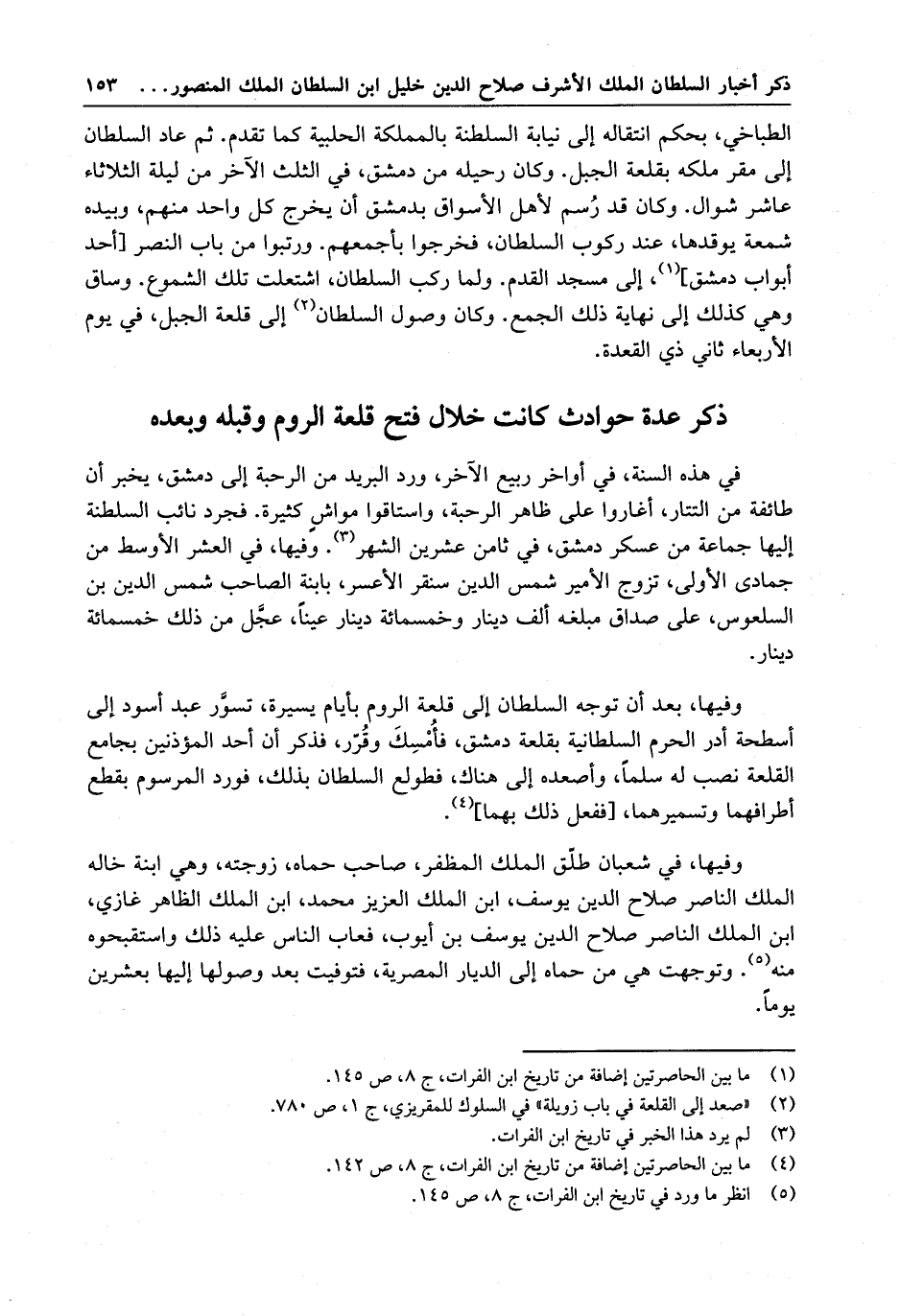 ذكر عدة حوادث كانت في خلال فتح قلعة الروم وقبله وبعده