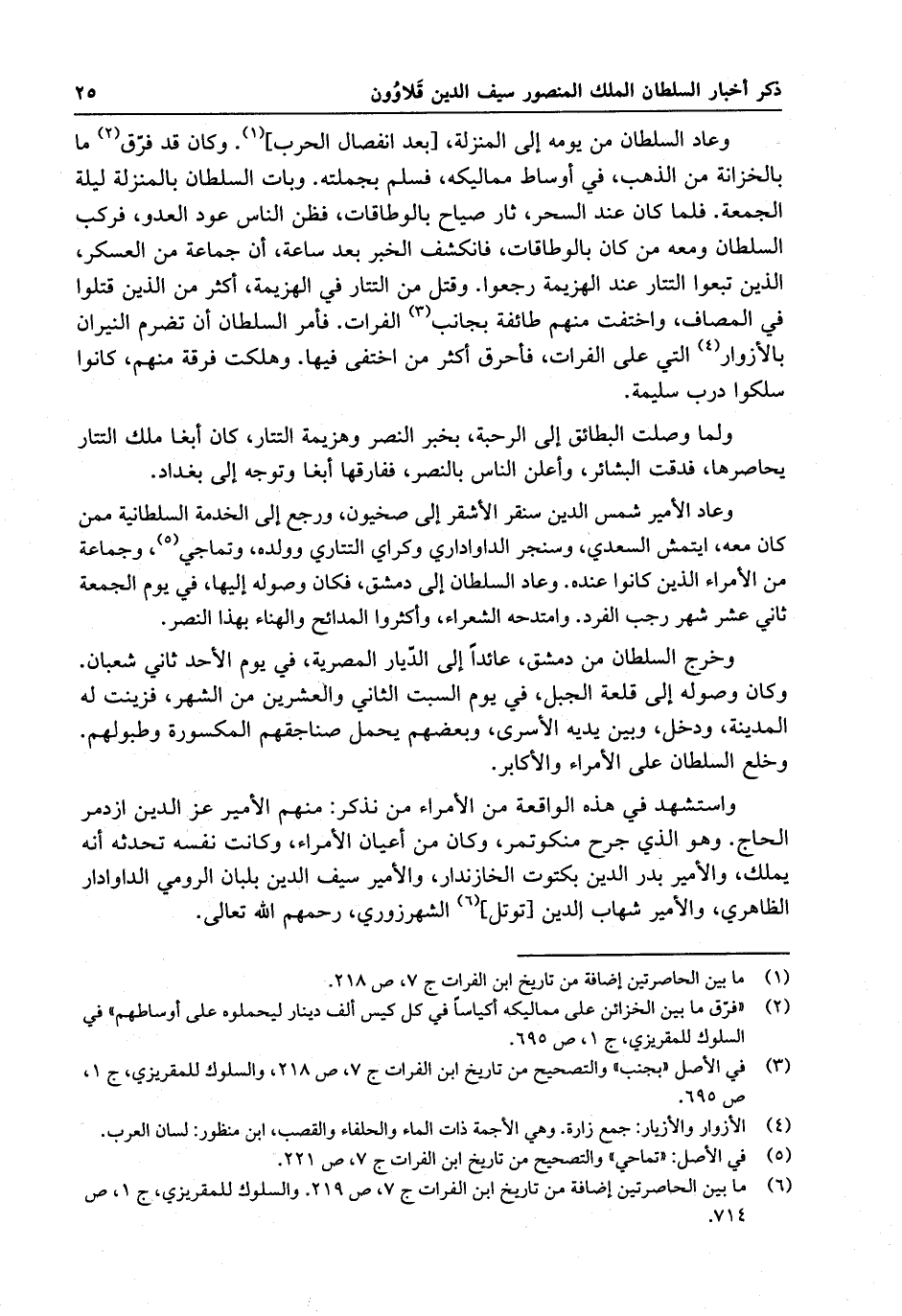 وعاد الأمير شمس الدين سنقر الأشقر إلى صهيون . ورجع إلى الخدمة السلطانية ممن كان معه ، ايتمش السعدي ، وسنجر الداواداري وكراي التتاري وولده ، وتماجي ، وجماعة من الأمراء الذين كانوا عنده . وعاد السلطان إلى دمشق ، فكان وصوله إليها ، في يوم الجمعة ثاني عشر شهر رجب الفرد . وامتدحه الشعراء ، وأكثروا المدائح والهناء بهذا النصر .