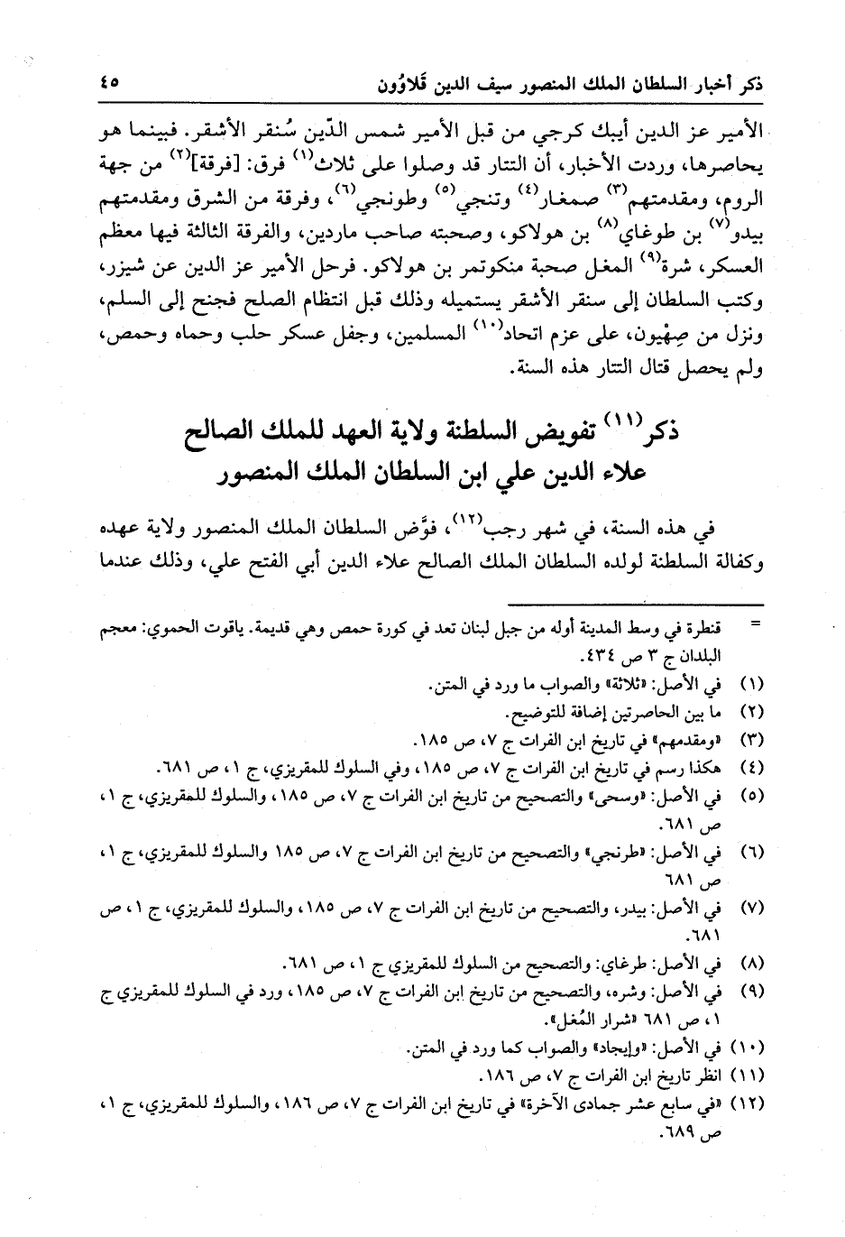 ذكر تفويض السلطنة ولاية العهد للملك الصالح علاء الدين علي ابن السلطان الملك المنصور