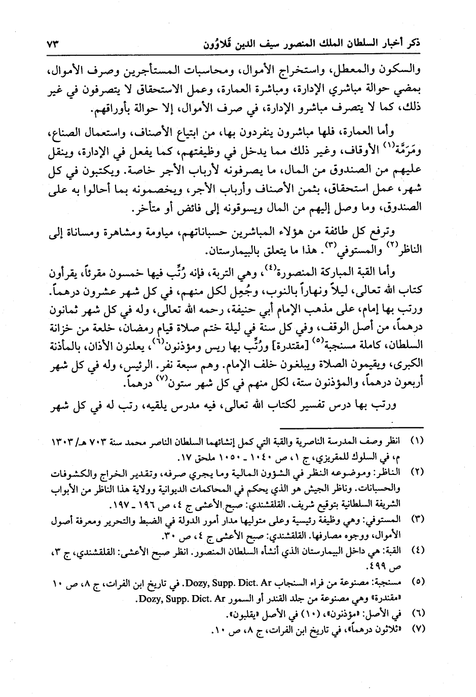 وأما العمارة ، فلها مباشرون ينفردون بها ، من ابتياع الأصناف ، واستعمال الصناع ، ومَرَمّة الأوقاف ، وغير ذلك مما يدخل في وظيفتهم ، كما يفعل في الإدارة ، وينقل عليهم من الصندوق من المال ، ما يصرفونه لأرباب الأجر خاصة . ويكتبون في كل شهر ، عمل استحقاق ، بثمن الأصناف وأرباب الأجر ، ويخصمونه بما أحالوا به على الصندوق ، وما وصل إليهم من المال ويسوقونه إلى فائض أو متأخر .