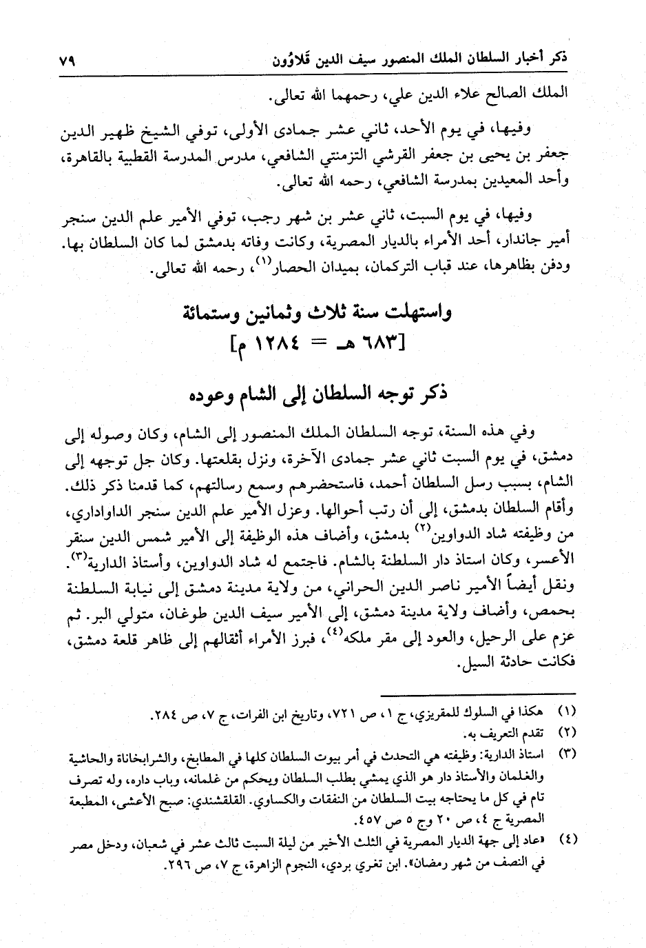 واستهلت سنة ثلاث وثمانين وستمائة [ 683 ه 1284 م ]