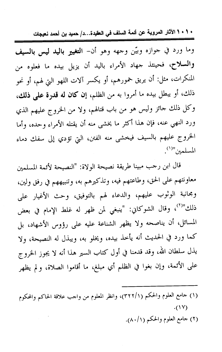 (¬١) جامع العلوم والحكم (١/ ٣٢٢)، وانظر العلوم من واجب علاقة الحاكم والمحكوم (١٧).