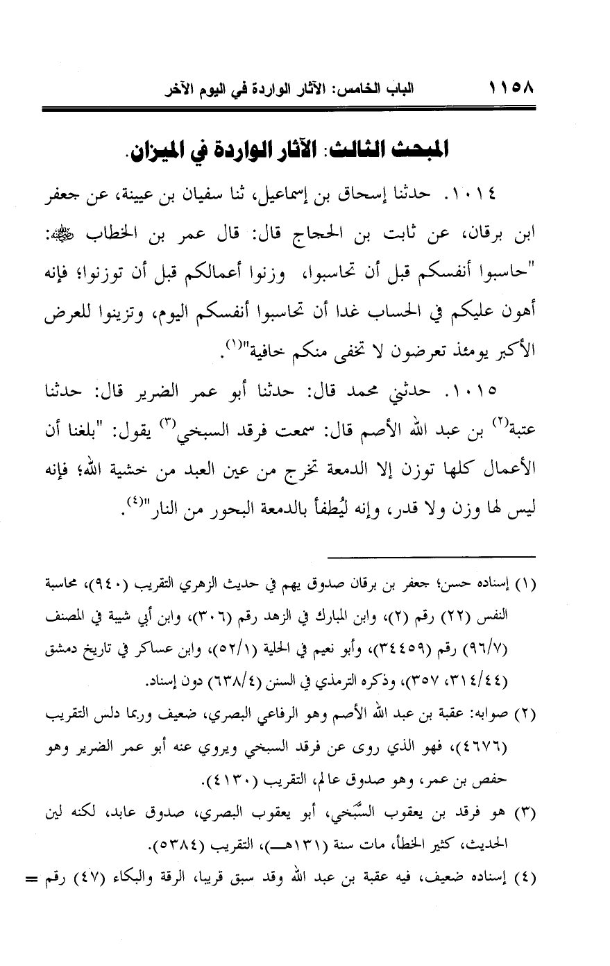 المبحث الثالث: الآثار الواردة في الميزان.