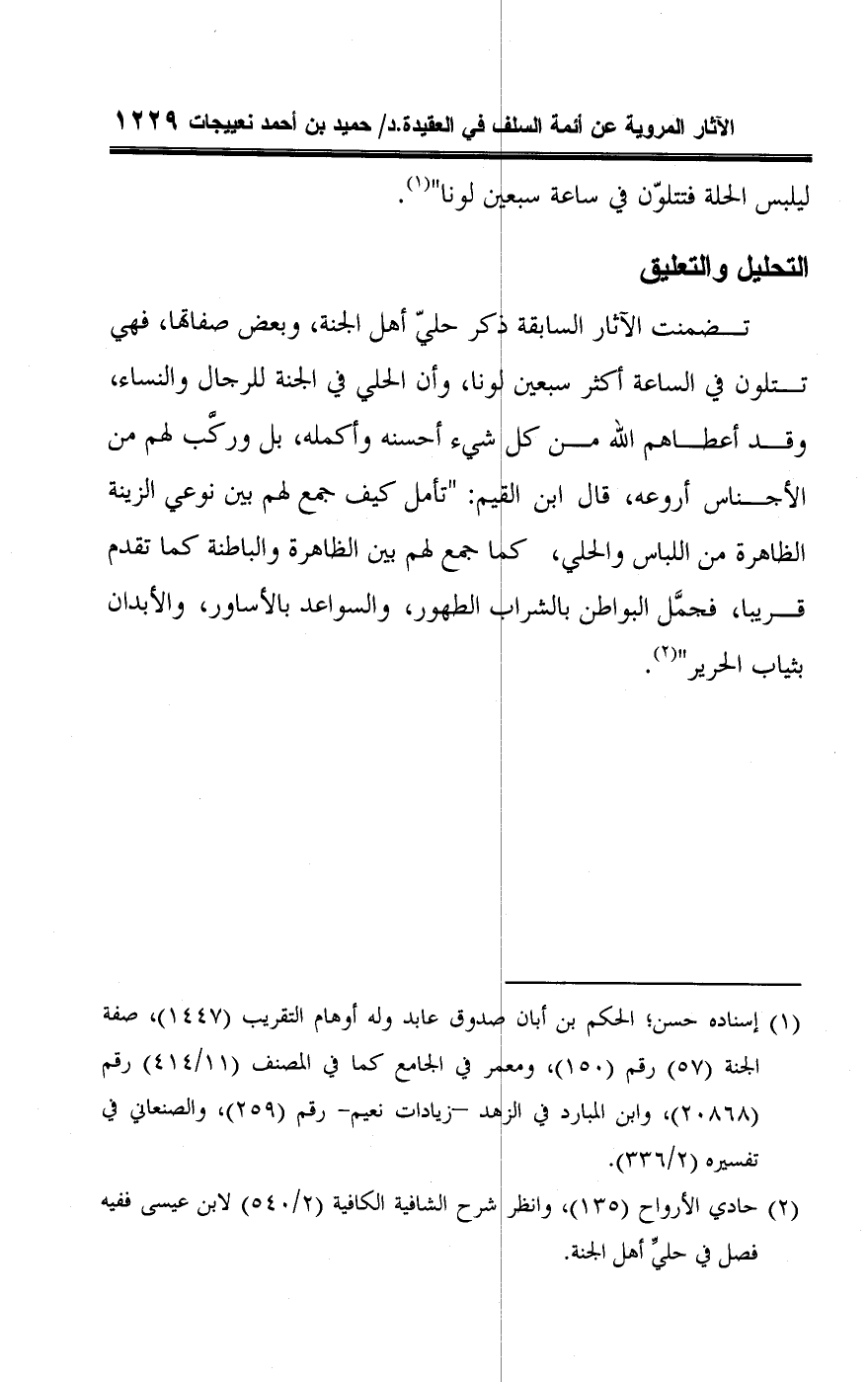 (¬٢) حادي الأرواح (١٣٥)، وانظر شرح الشافية الكافية (٢/ ٥٤٠) لابن عيسى ففيه فصل في حليِّ أهل الجنة.