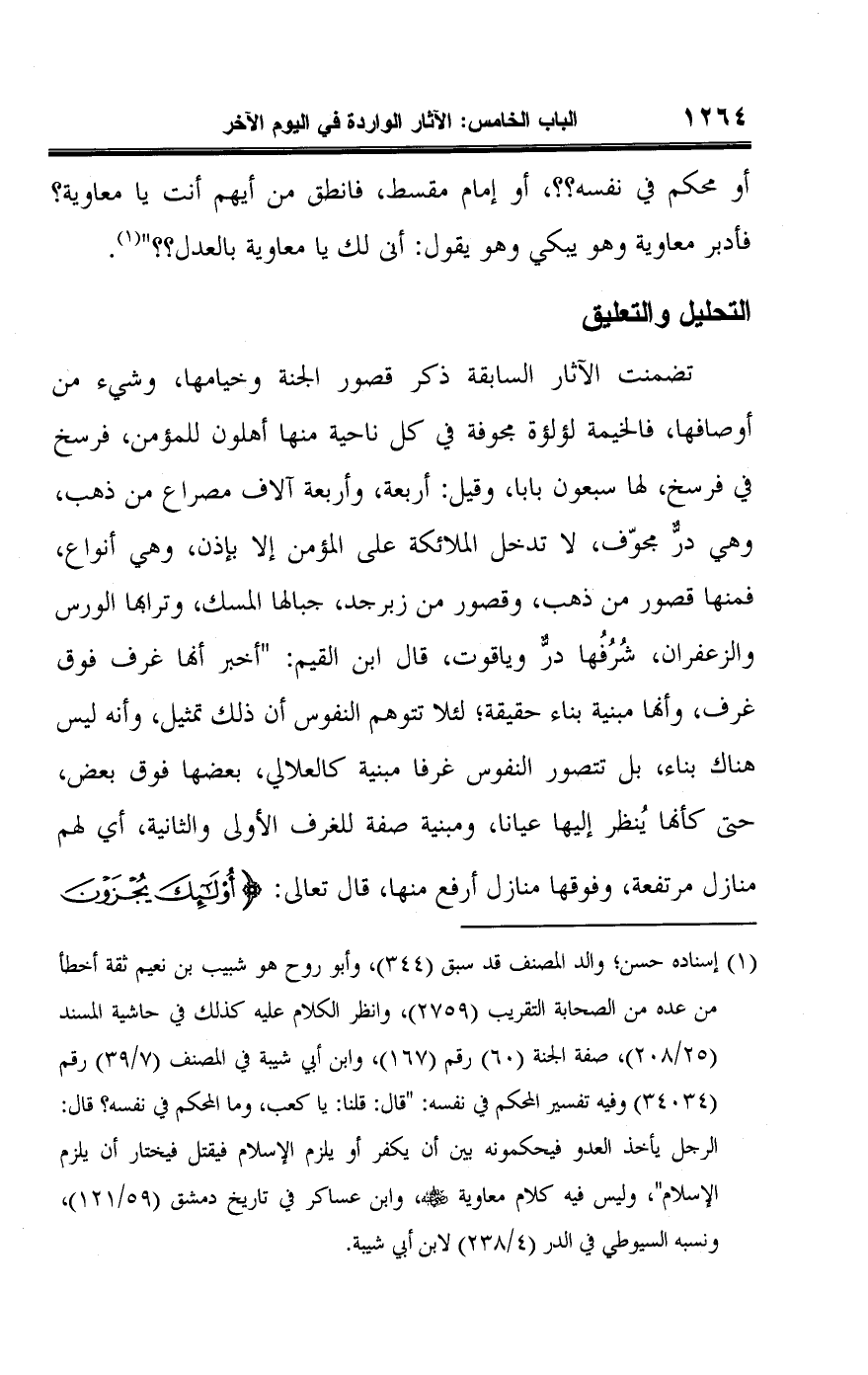 (¬١) إسناده حسن؛ والد المصنف قد سبق (٣٤٤)، وأبو روح هو شبيب بن نعيم ثمة أخطأ من عده من الصحابة التقريب (٢٧٥٩)، وانظر الكلام عليه كذلك في حاشية المسند (٢٥/ ٢٠٨)، صفة الجنة (٦٠) رقم (١٦٧)، وابن أبي شيبة في المصنف (٧/ ٣٩) رقم (٣٤٠٣٤) وفيه تفسير المحكم في نفسه: "قال: قلنا: يا كعب، وما المحكم في نفسه؟ قال: الرجل يأخذ العدو فيحكمونه بين أن يكفر أو يلزم الإسلام فيقتل فيختار أن يلزم الإسلام"، وليس فيه كلام معاوية -رضي اللَّه عنه-، وابن عساكر في تاريخ دمشق (٥٩/ ١٢١)، ونسبه السيوطي في الدر (٤/ ٢٣٨) لابن أبي شيبة.