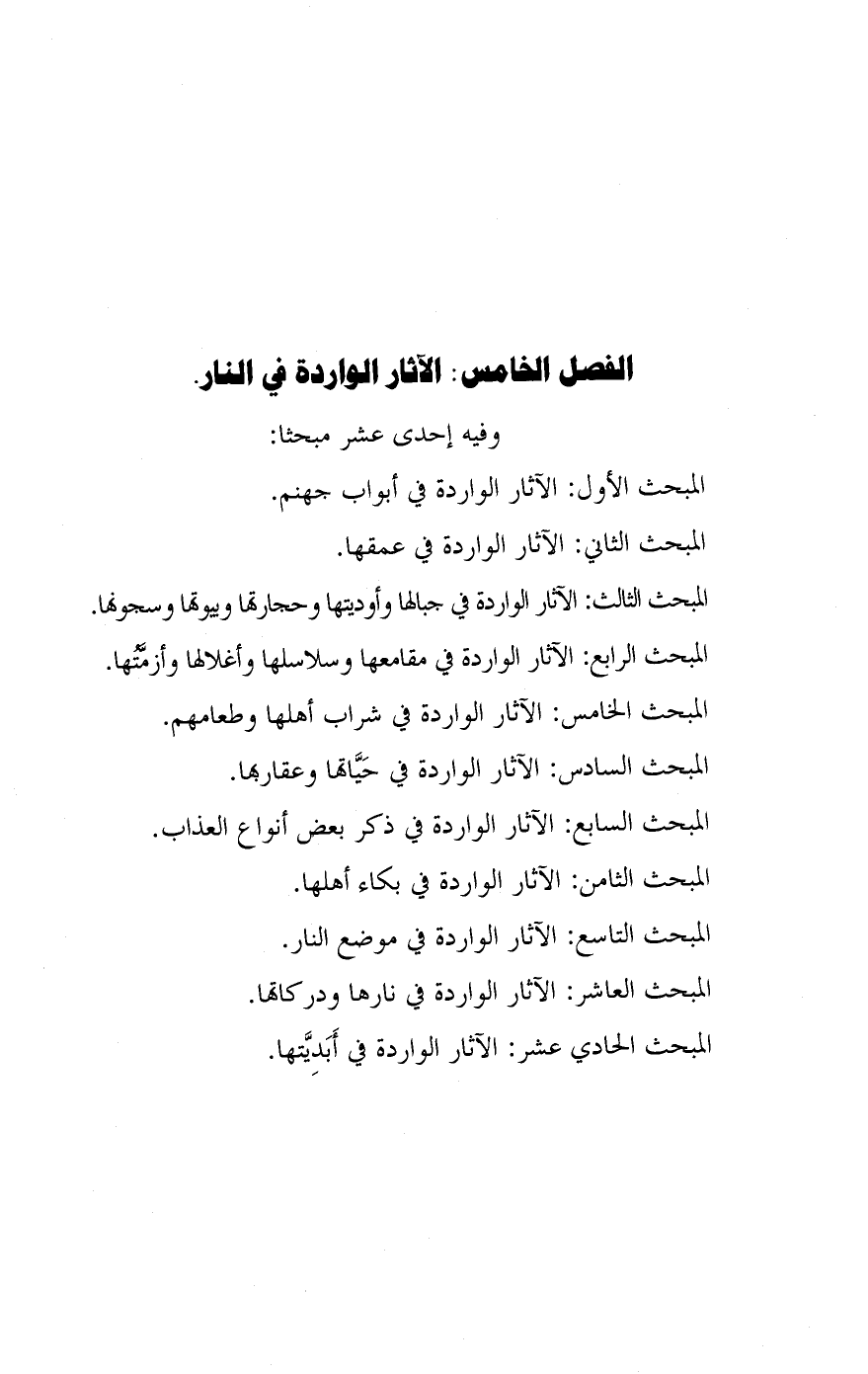 الفصل الخامس: الآثار الواردة في النار.