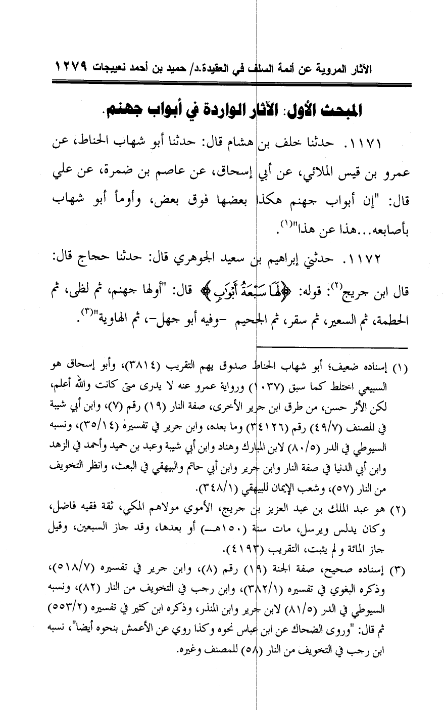 المبحث الأول: الآثار الواردة في أبواب جهنم.