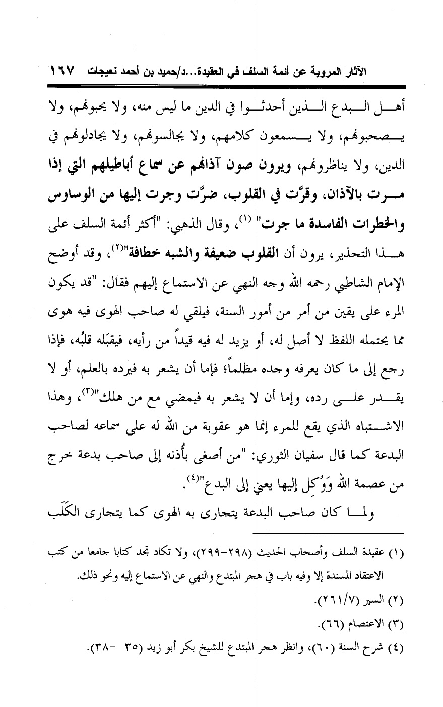 (¬١) عقيدة السلف وأصحاب الحديث (٢٩٨ - ٢٩٩)، ولا تكاد تجد كتابا جامعا من كتب الاعتقاد المسندة إلا وفيه باب في هجر المبتدع والنهي عن الاستماع إليه ونحو ذلك.