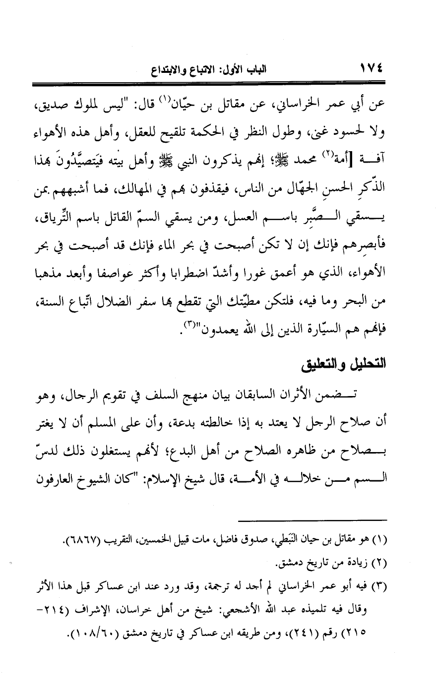 (¬١) هو مقاتل بن حيان النَبَطي، صدوق فاضل، مات قبيل الخمسين، التقريب (٦٨٦٧).