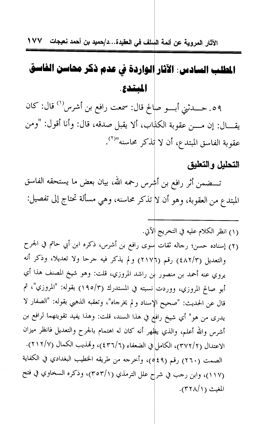 المطلب السادس: الآثار الواردة في عدم ذكر محاسن الفاسق المبتدع.