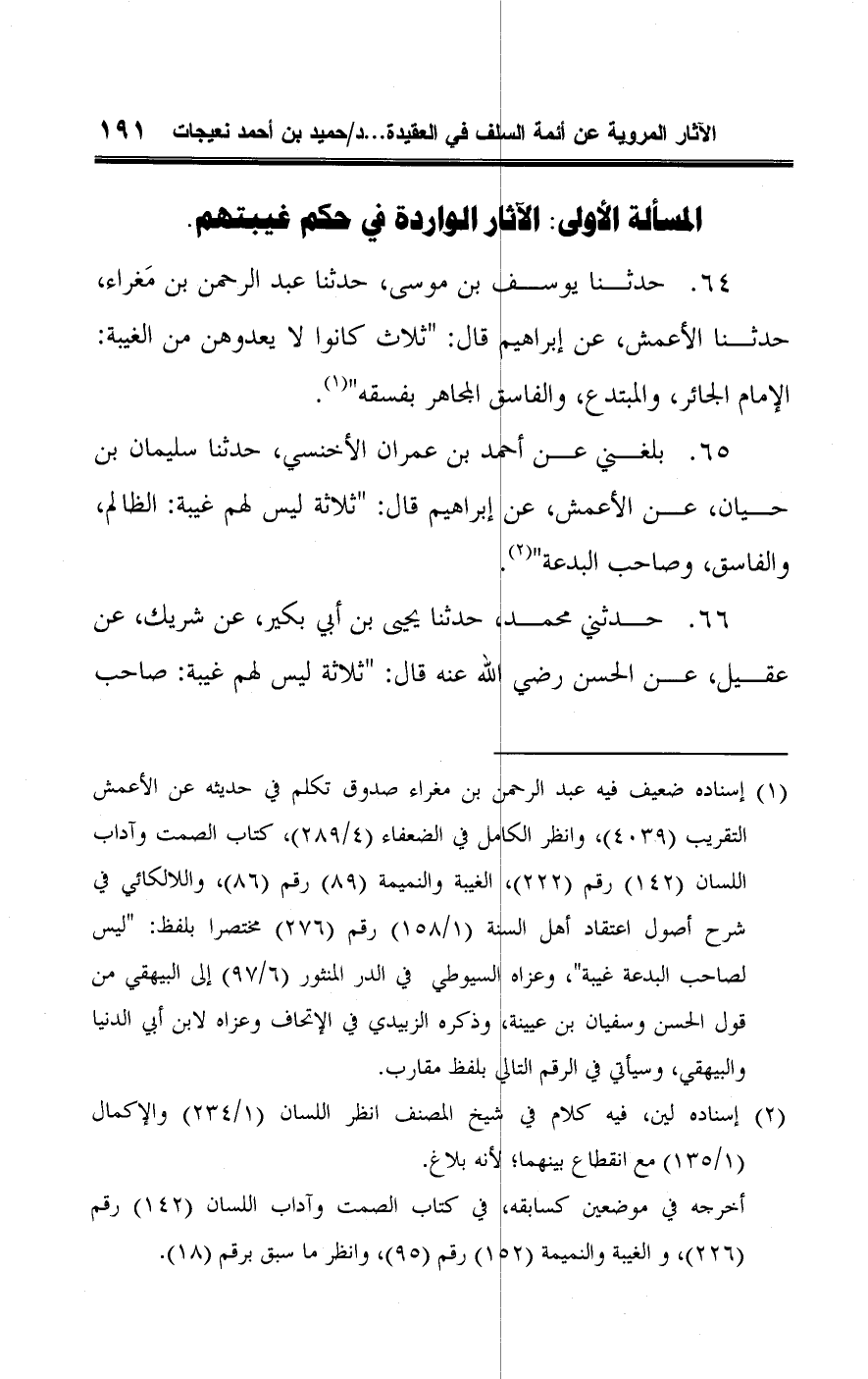 المسألة الأولى: الآثار الواردة في حكم غيبتهم.