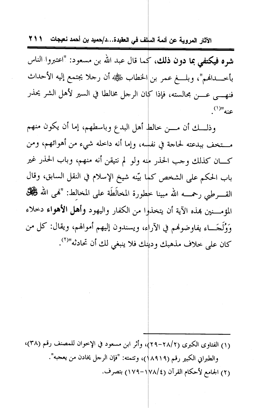 (¬١) الفتاوى الكبرى (٢/ ٢٨ - ٢٩)، وأثر ابن مسعود في الإخوان للمصنف رقم (٣٨)، والطبراني الكبير رقم (١٨٩١٩)، وتتمته: "فإن الرجل يخادن من يعجبه".