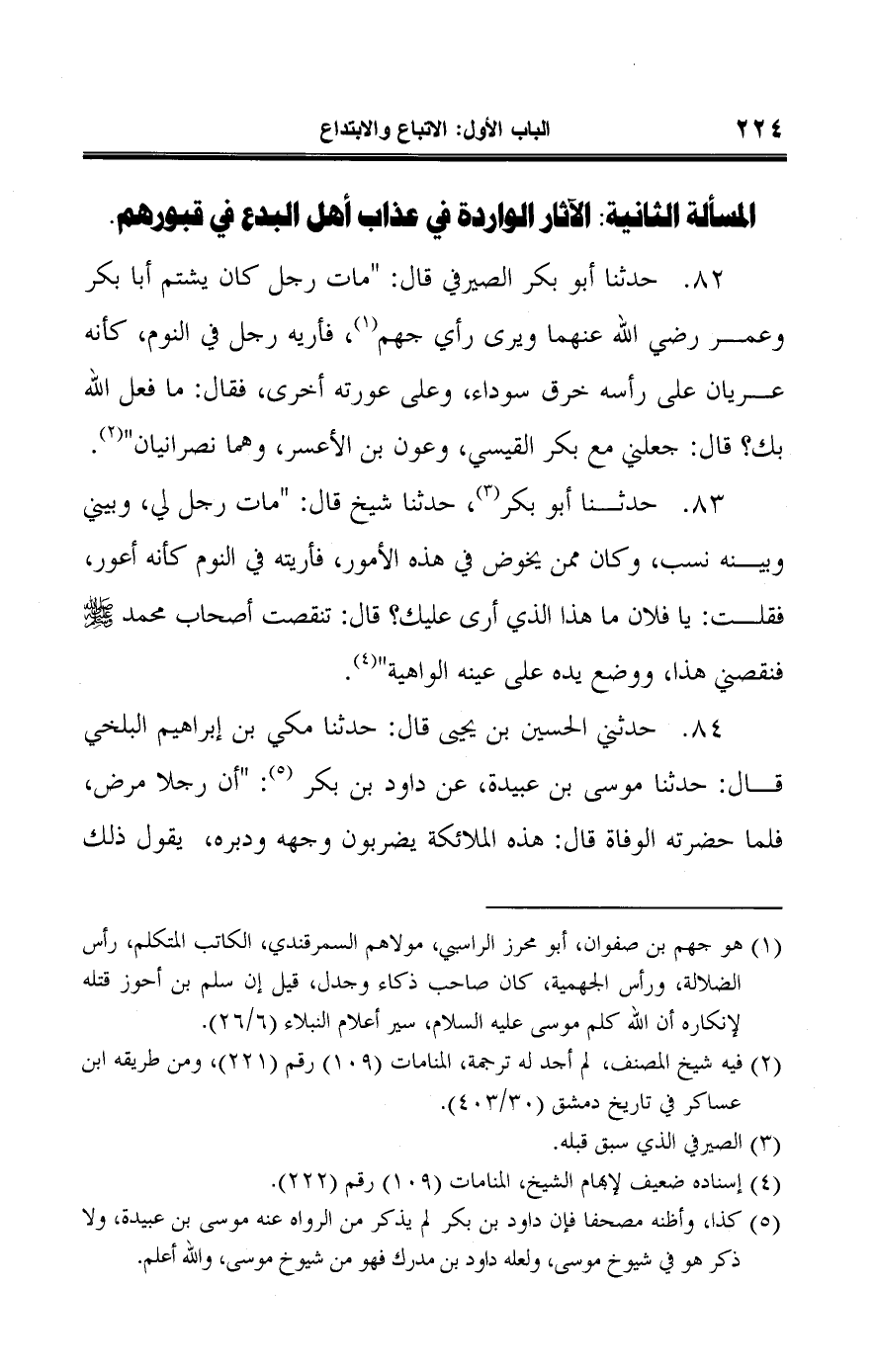 المسألة الثانية: الآثار الواردة في عذاب أهل البدع في قبورهم.